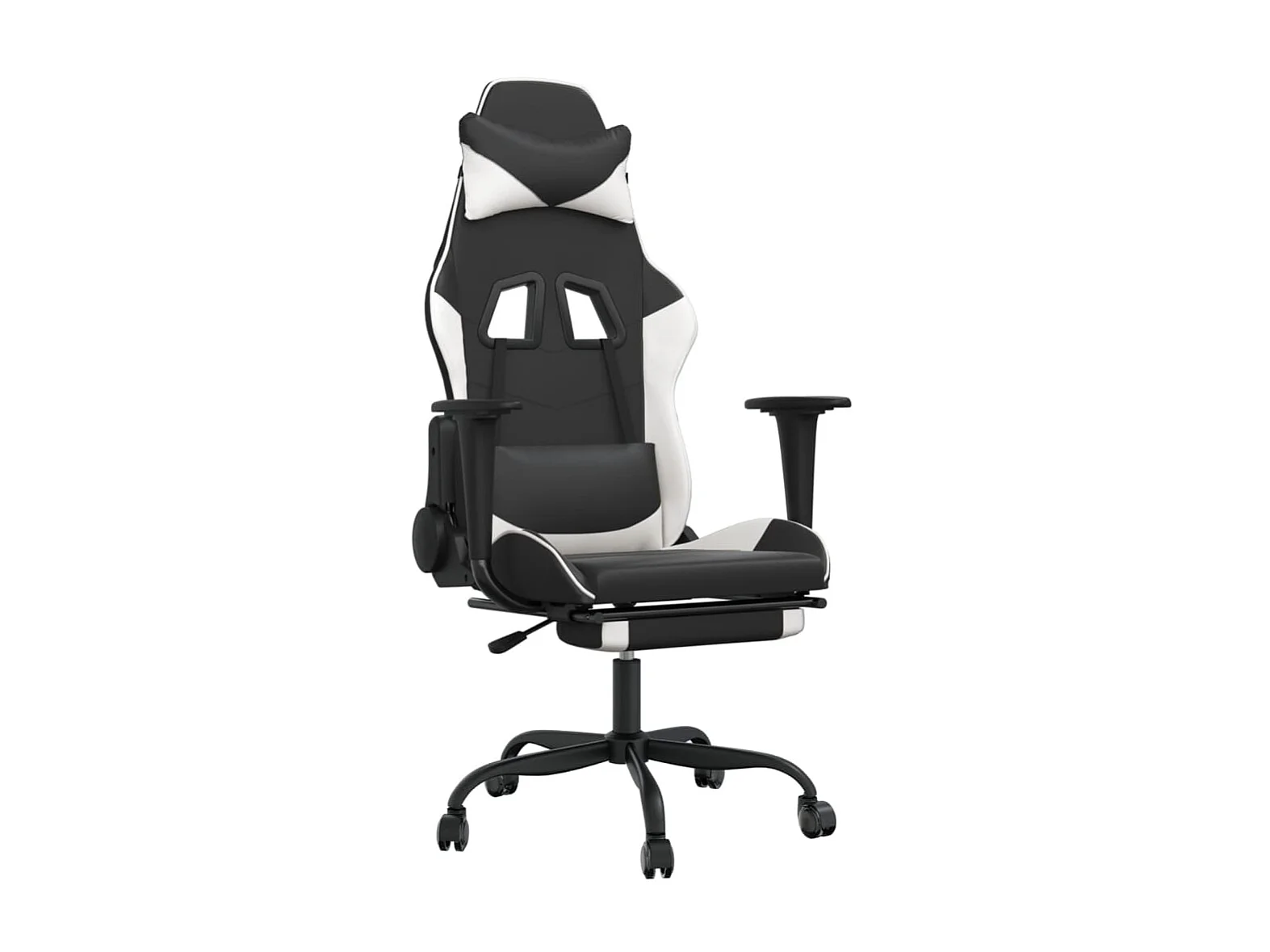 Cadeira de gaming c/ apoio pés couro artificial preto/branco PT125283