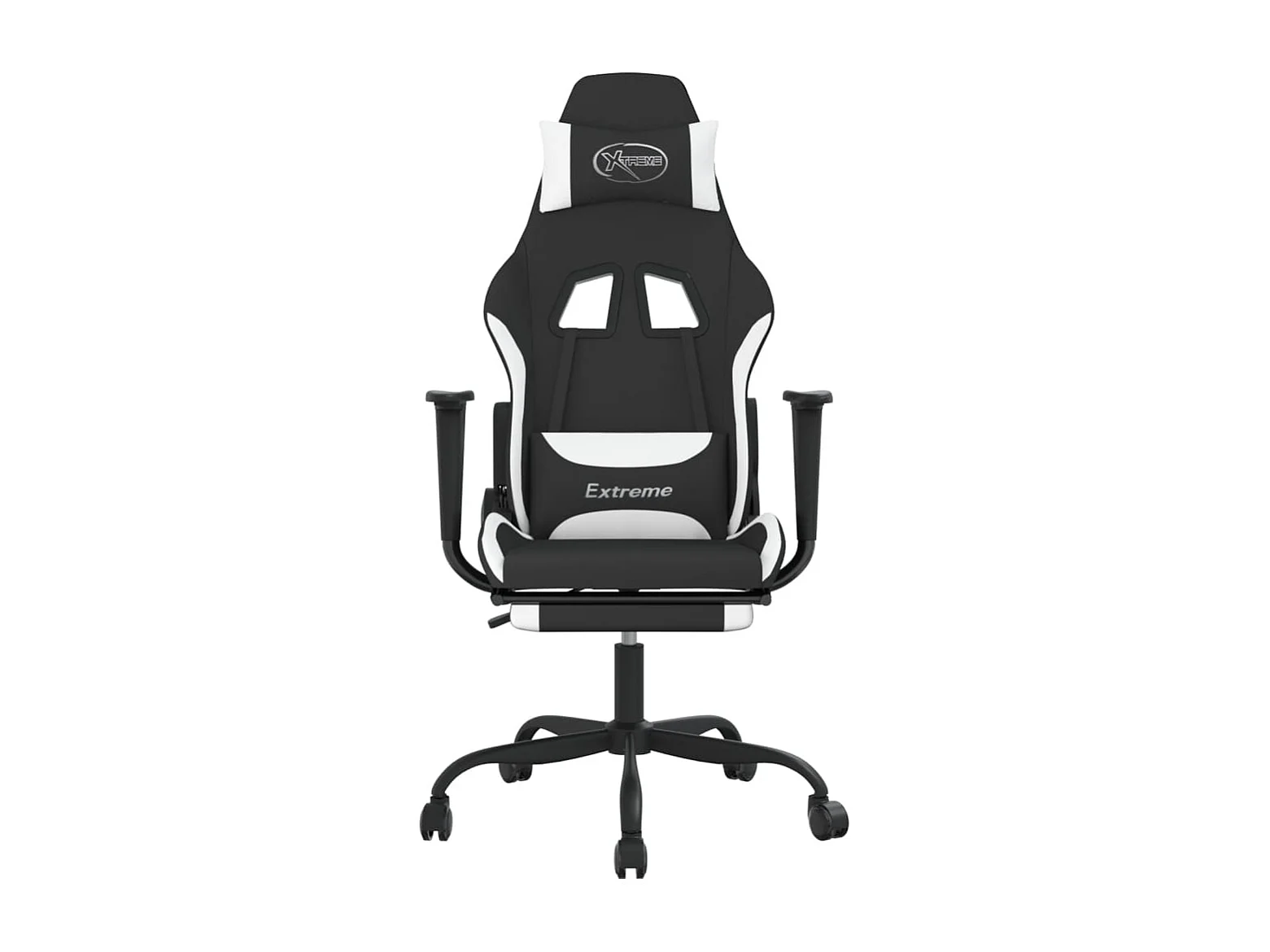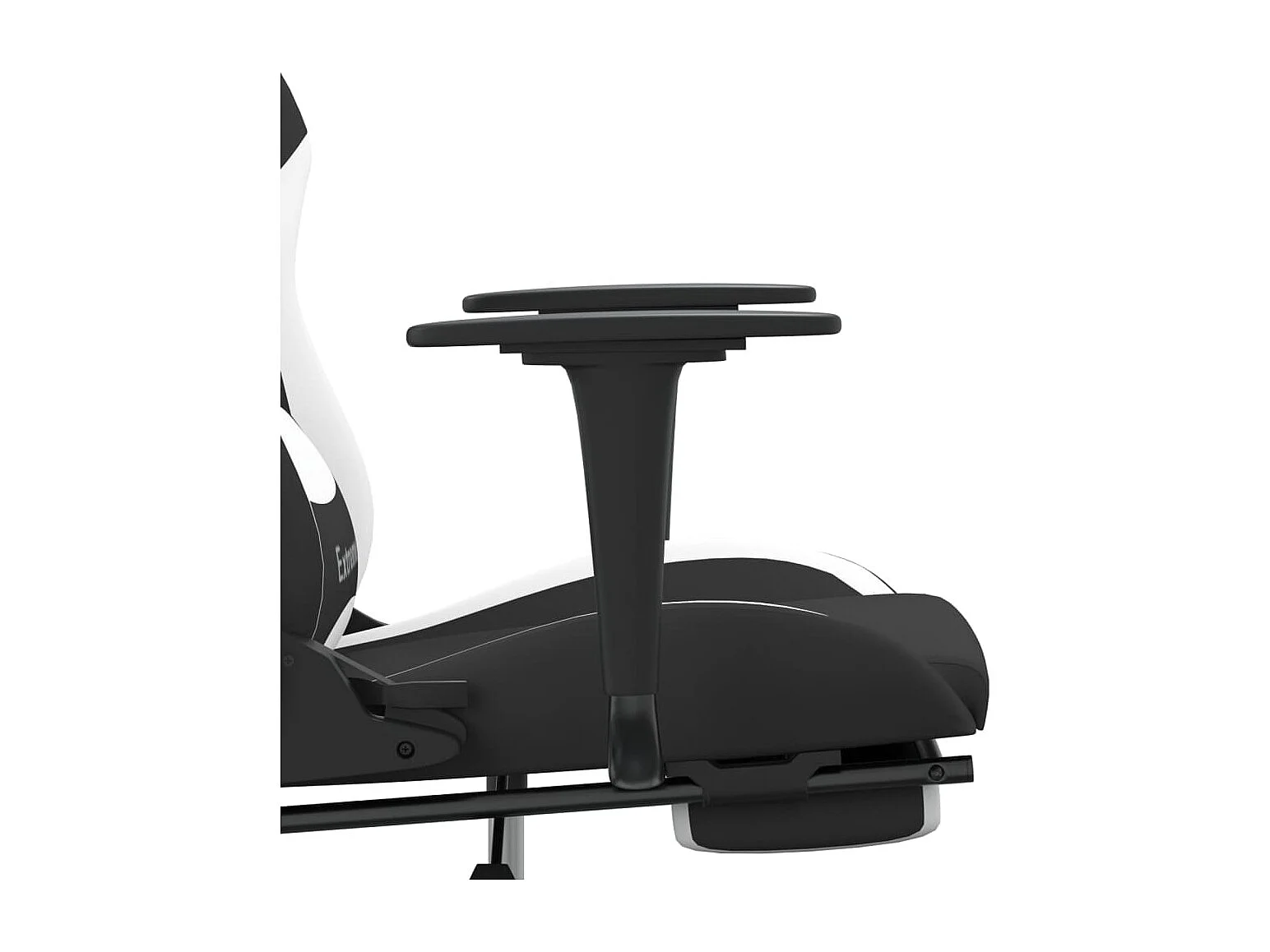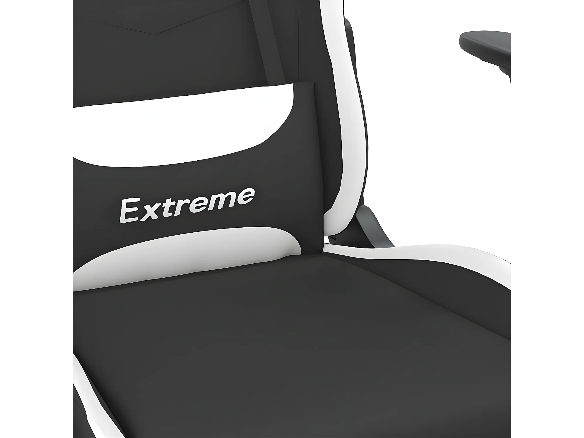 Cadeira de gaming com apoio de pés tecido preto e branco