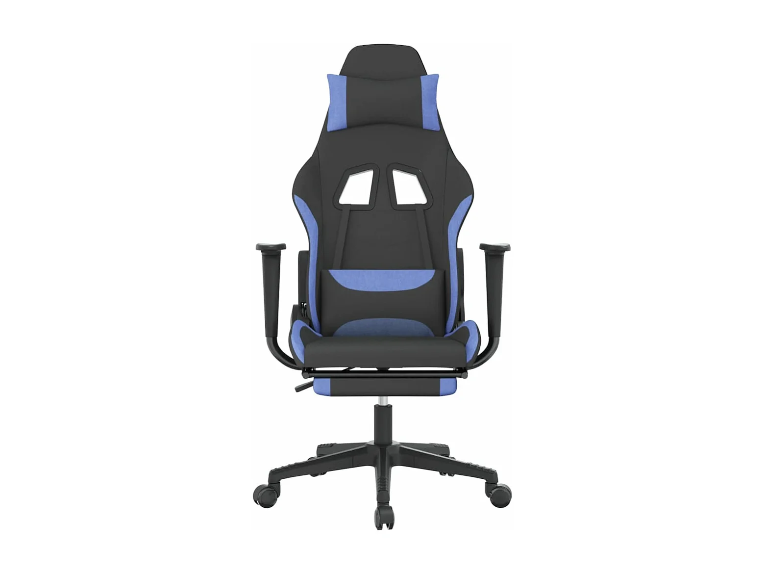 Cadeira de gaming com apoio para os pés tecido preto e azul