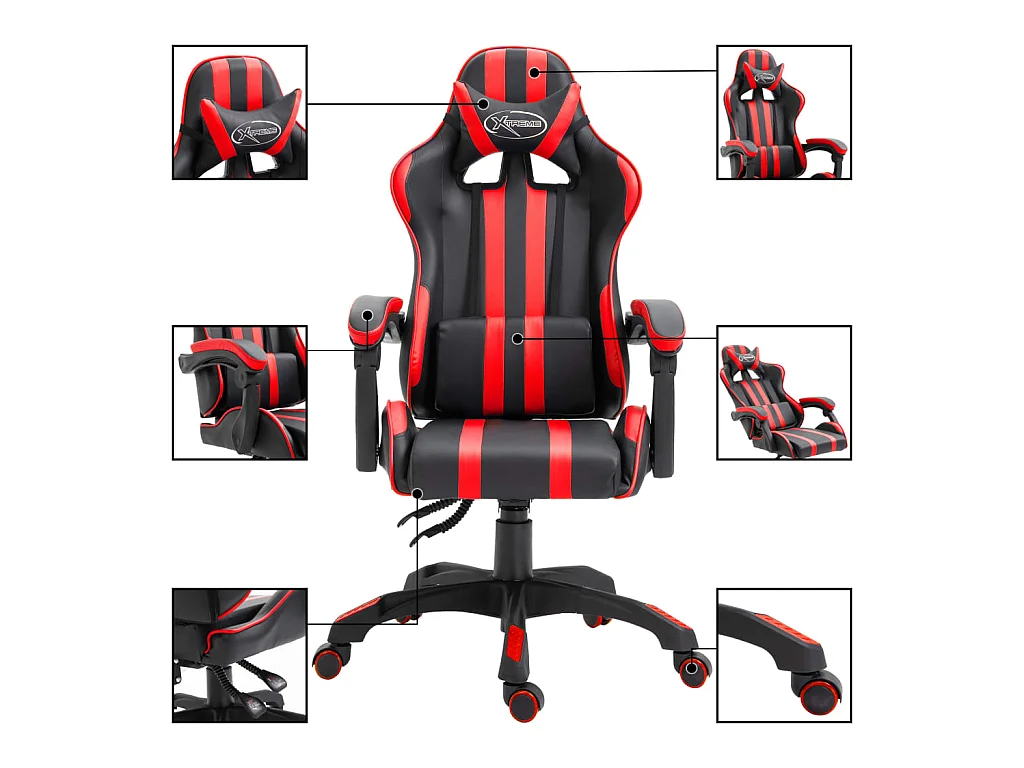 Cadeira giratória para jogos em PVC vermelho