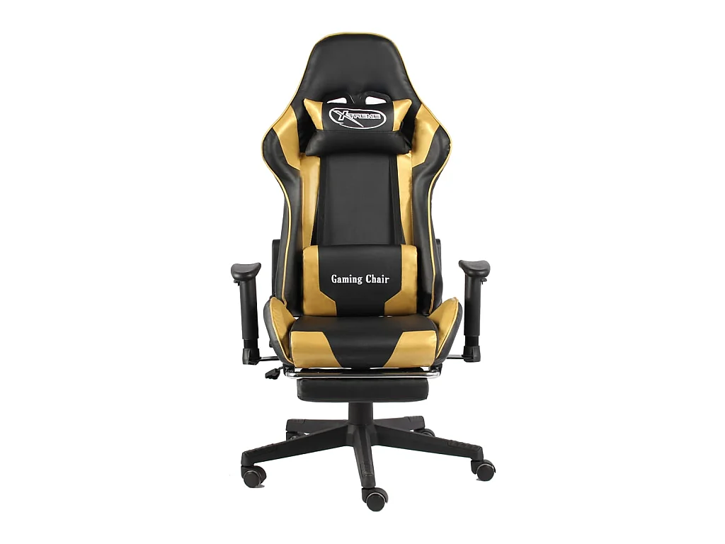 Cadeira giratória para jogos com apoio para pés em PVC dourado