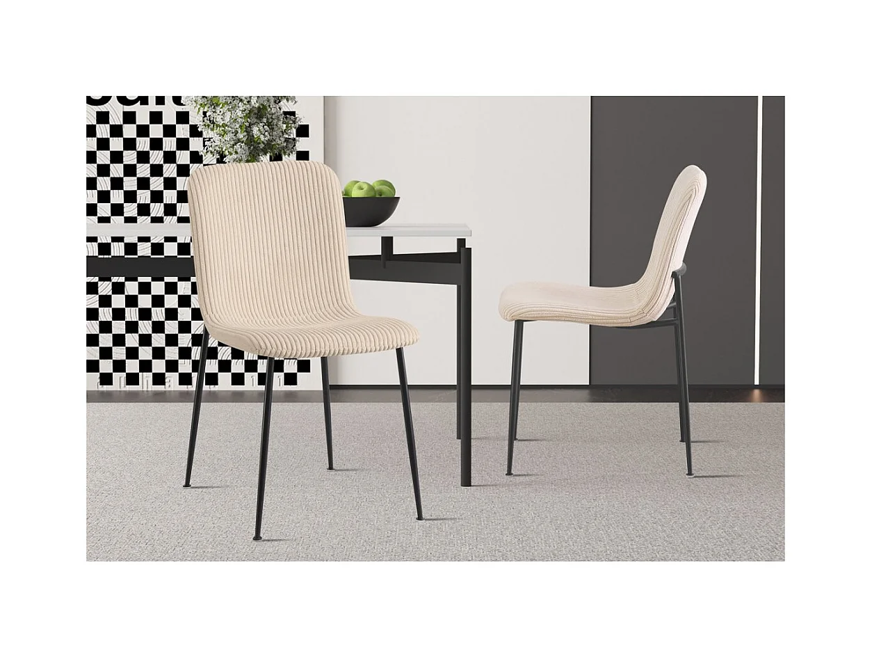 Cadeira de jantar CORDUROY – Veludo cotelê bege – Pés de metal preto – Estilo design