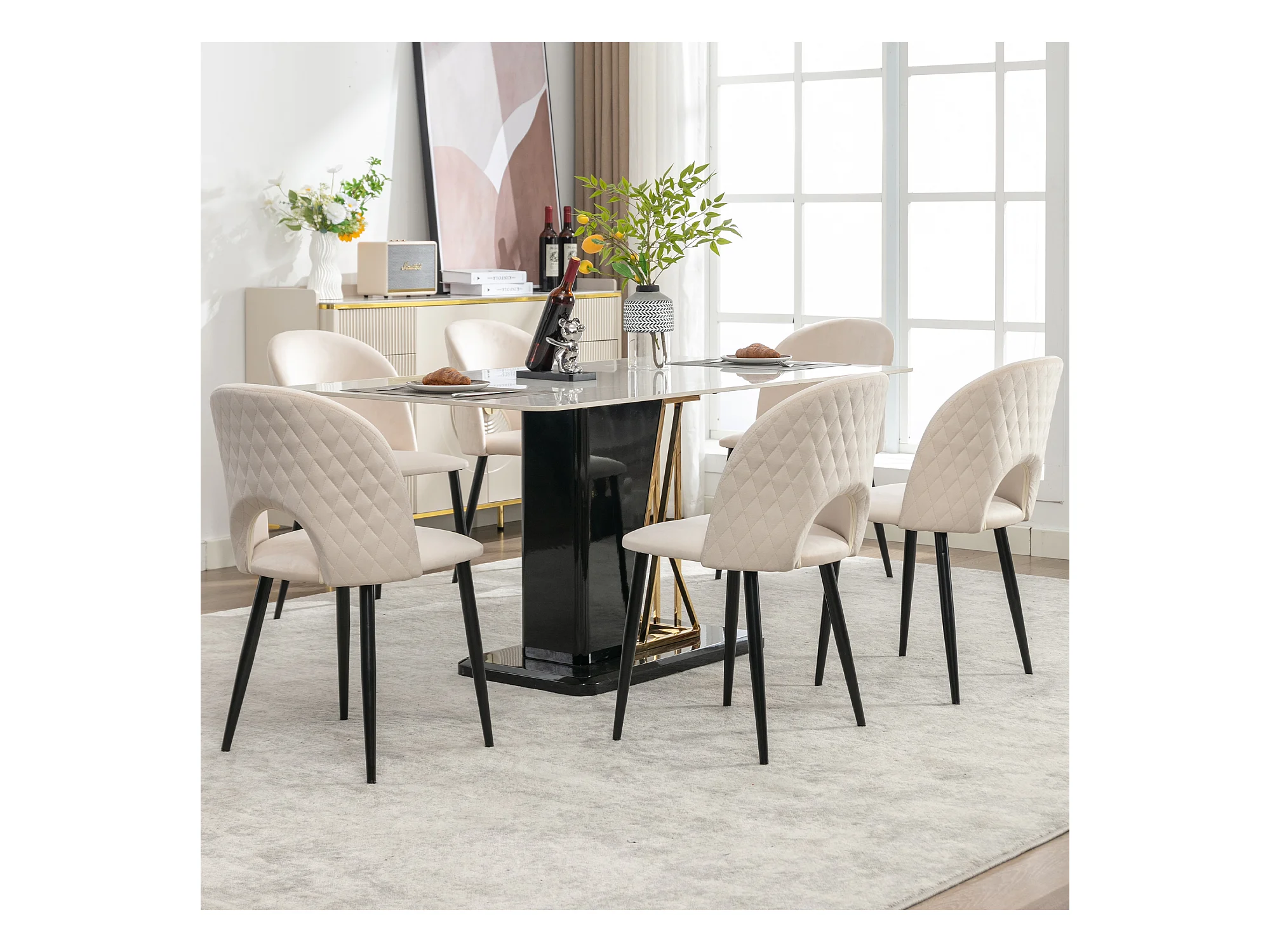 Cadeira de jantar de veludo bege com encosto e pernas ajustáveis, design de diamante, para cozinha e sala de estar, conjunto de 6