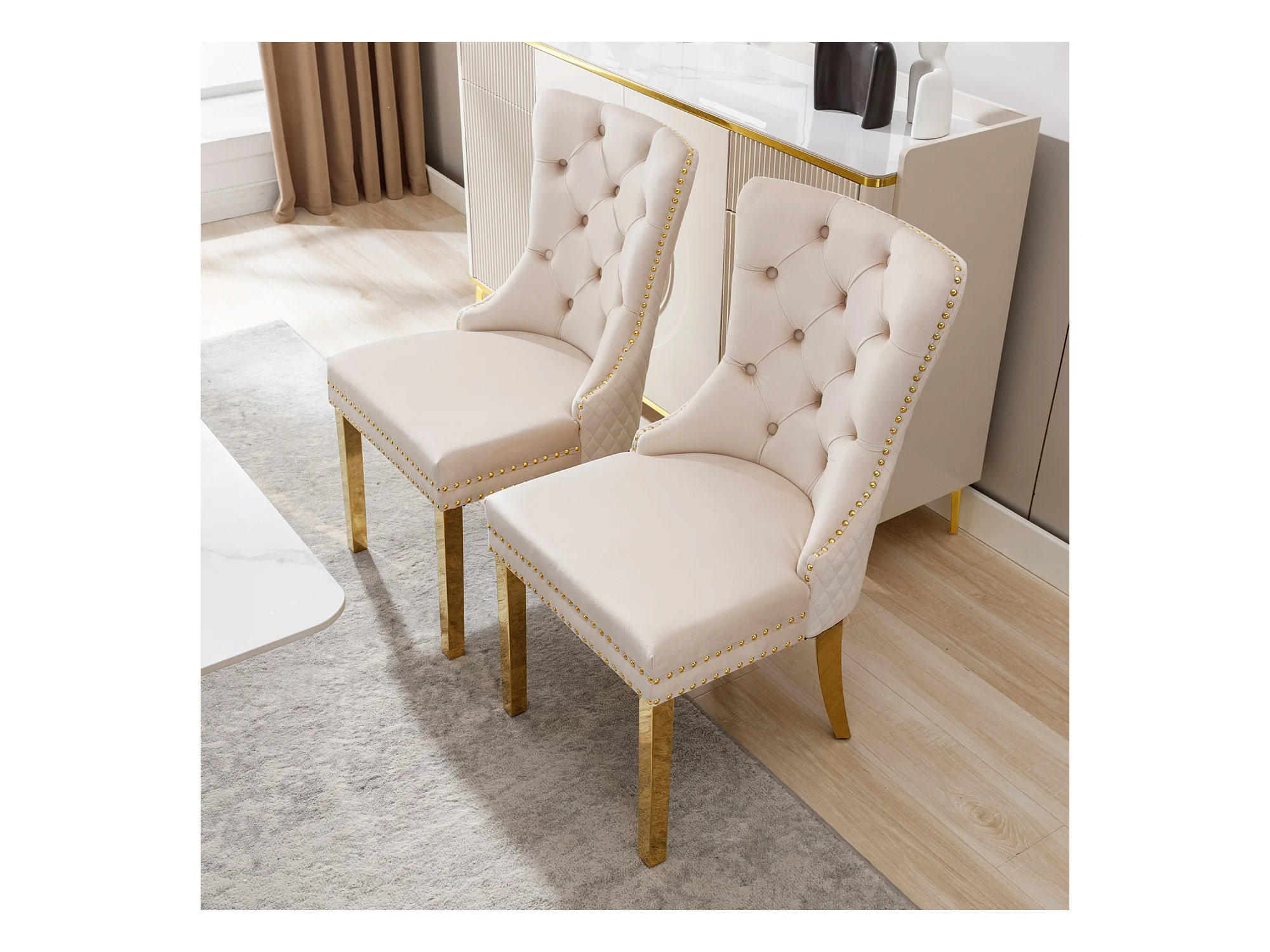 Cadeira de jantar de veludo bege com pernas de aço inoxidável dourado, design original, cozinha e sala de estar, 50x45x95 cm, conjunto de 2