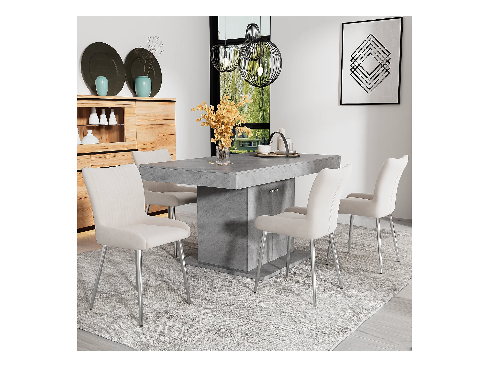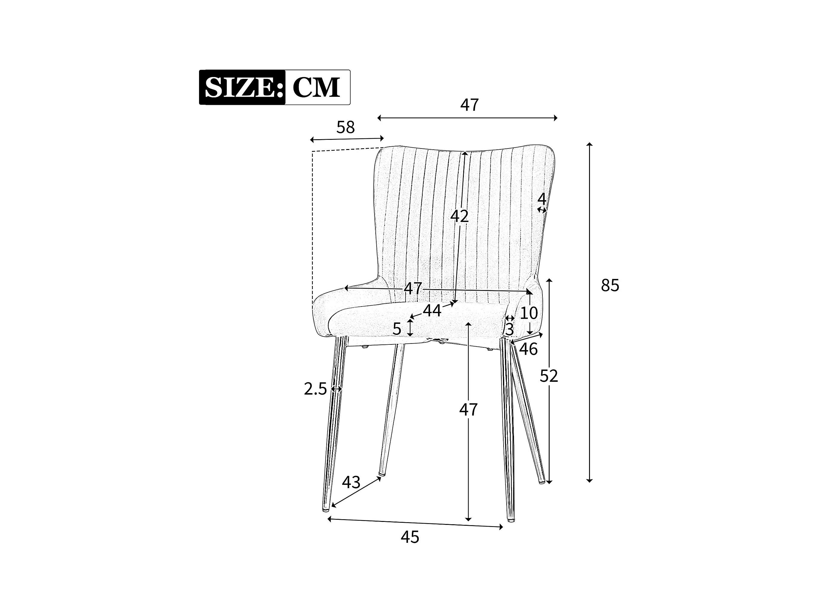 Cadeira de veludo bege com encosto estofado e pernas de metal prateado para sala de estar ou sala de jantar, conjunto de 2