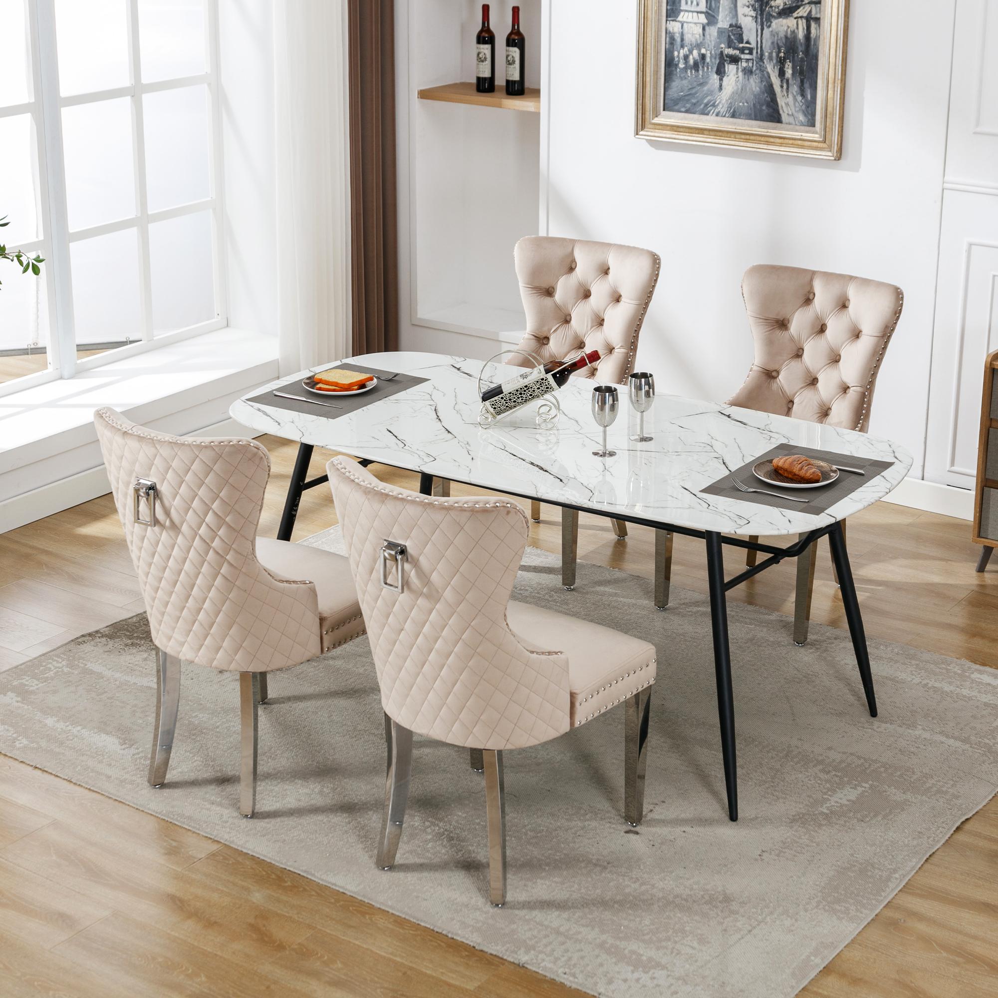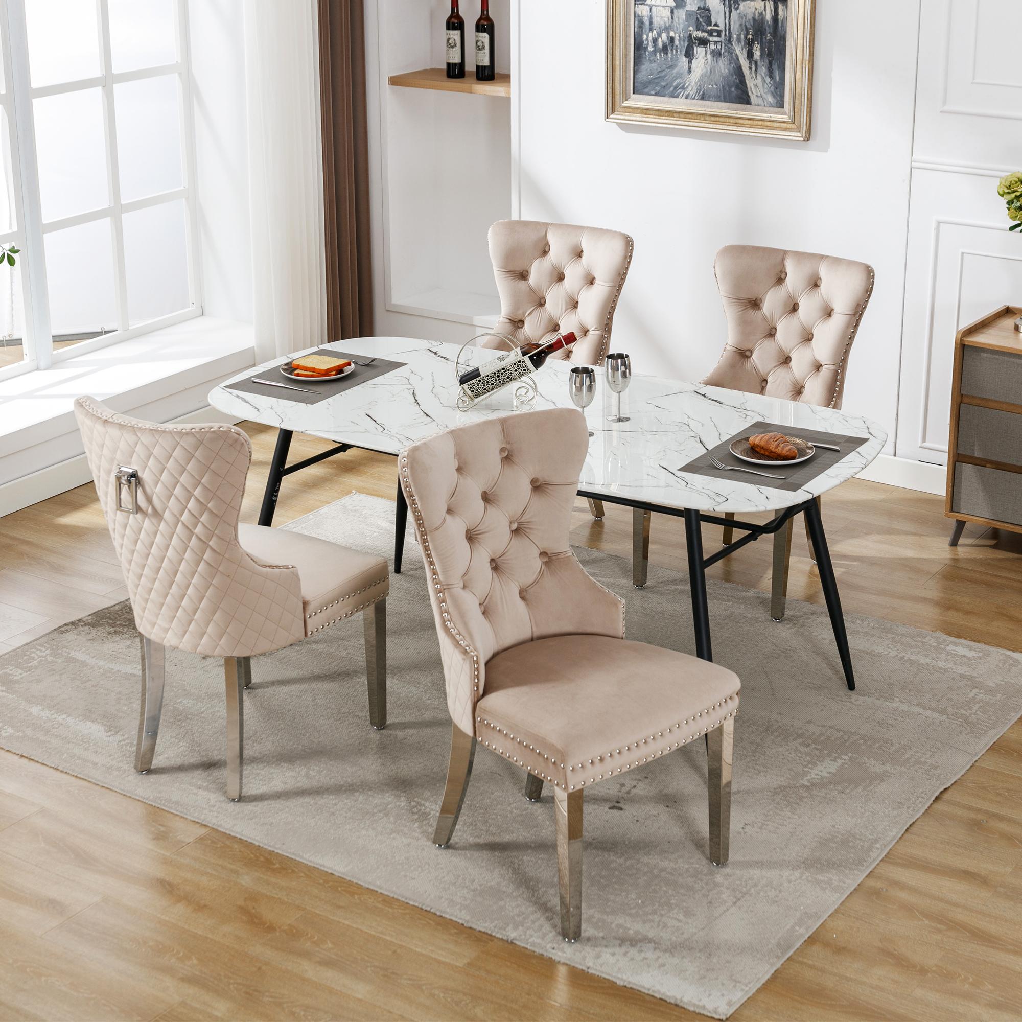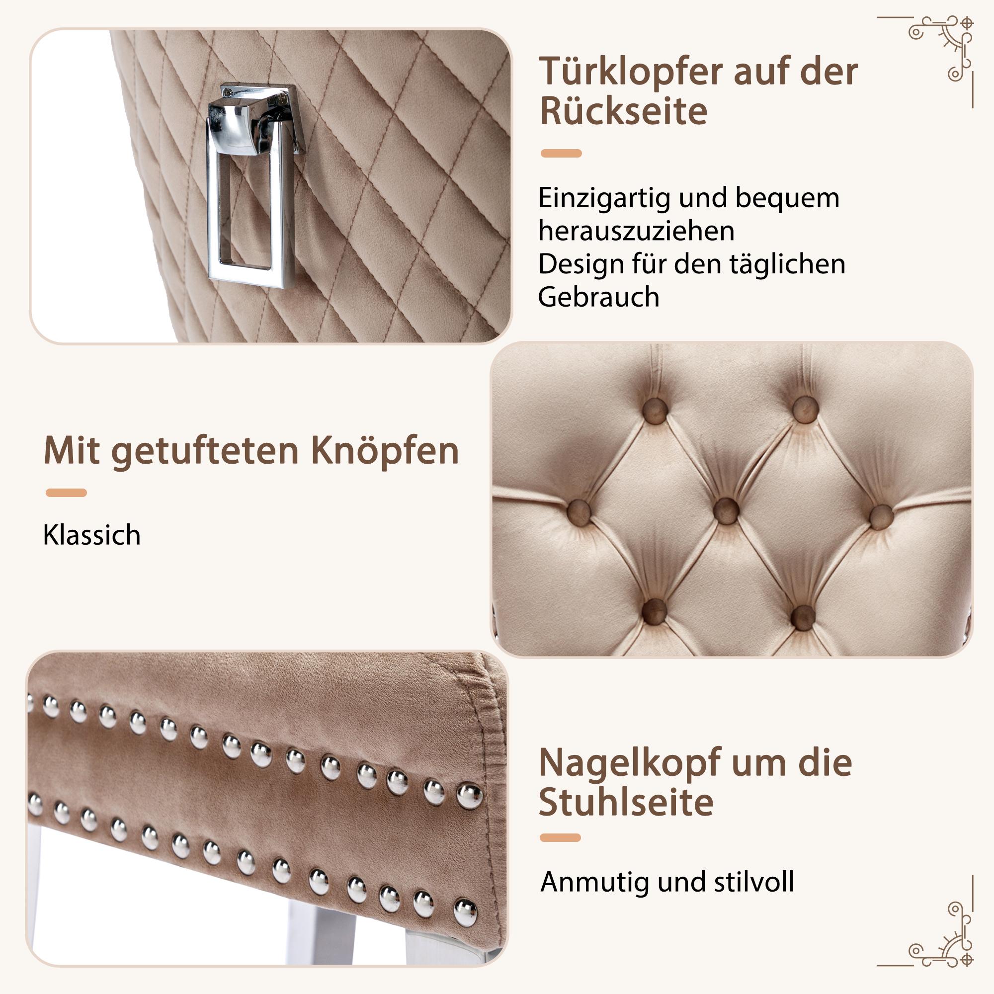 Cadeira de jantar de veludo com pernas de metal, design elegante, confortável para cozinha e sala de estar, bege, conjunto de 4