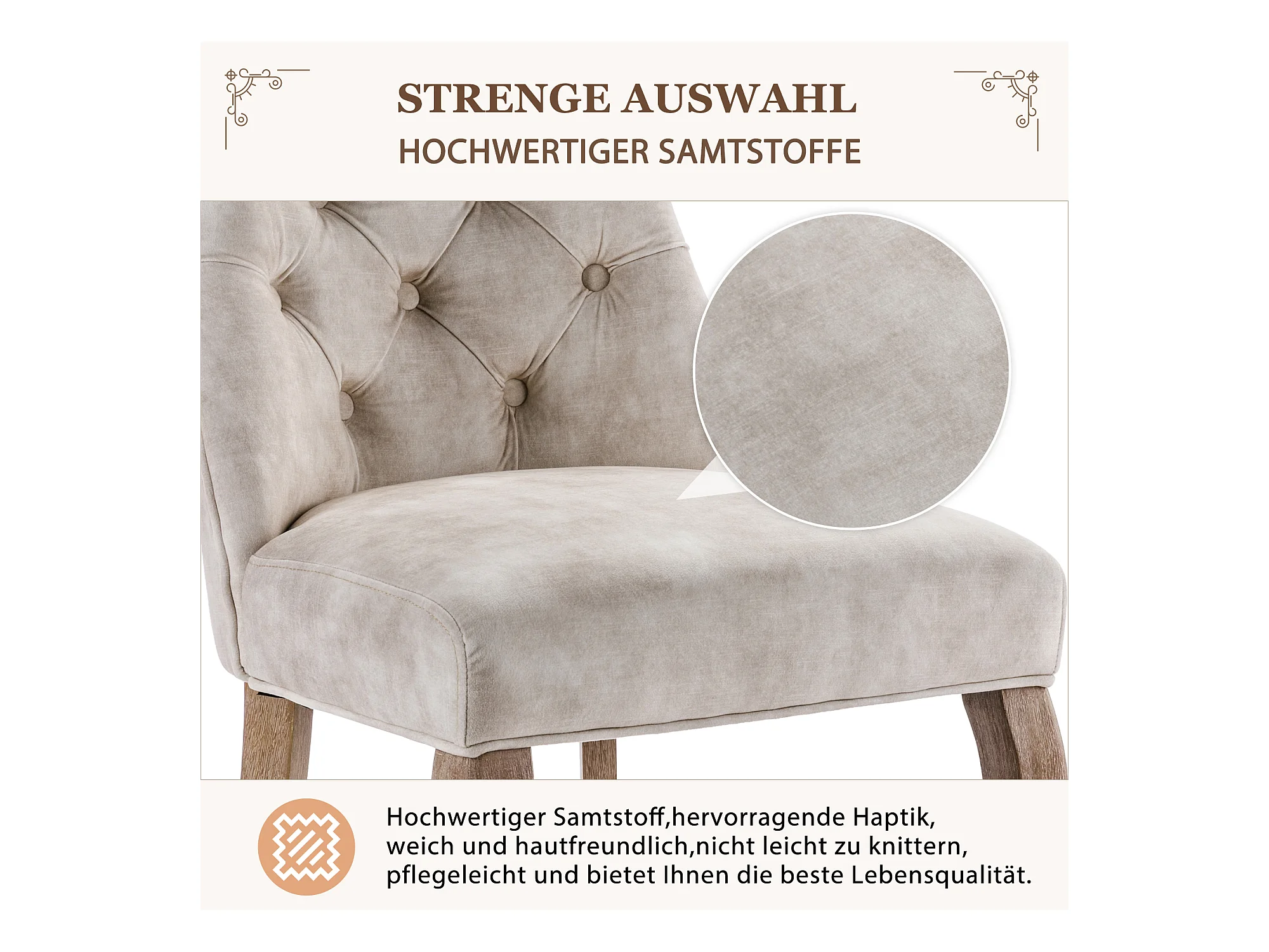 Cadeiras de jantar de veludo de alta qualidade, 2 peças, design ergonômico, pernas de metal ajustáveis, bege, 54x54x85,5 cm, conjunto de 4