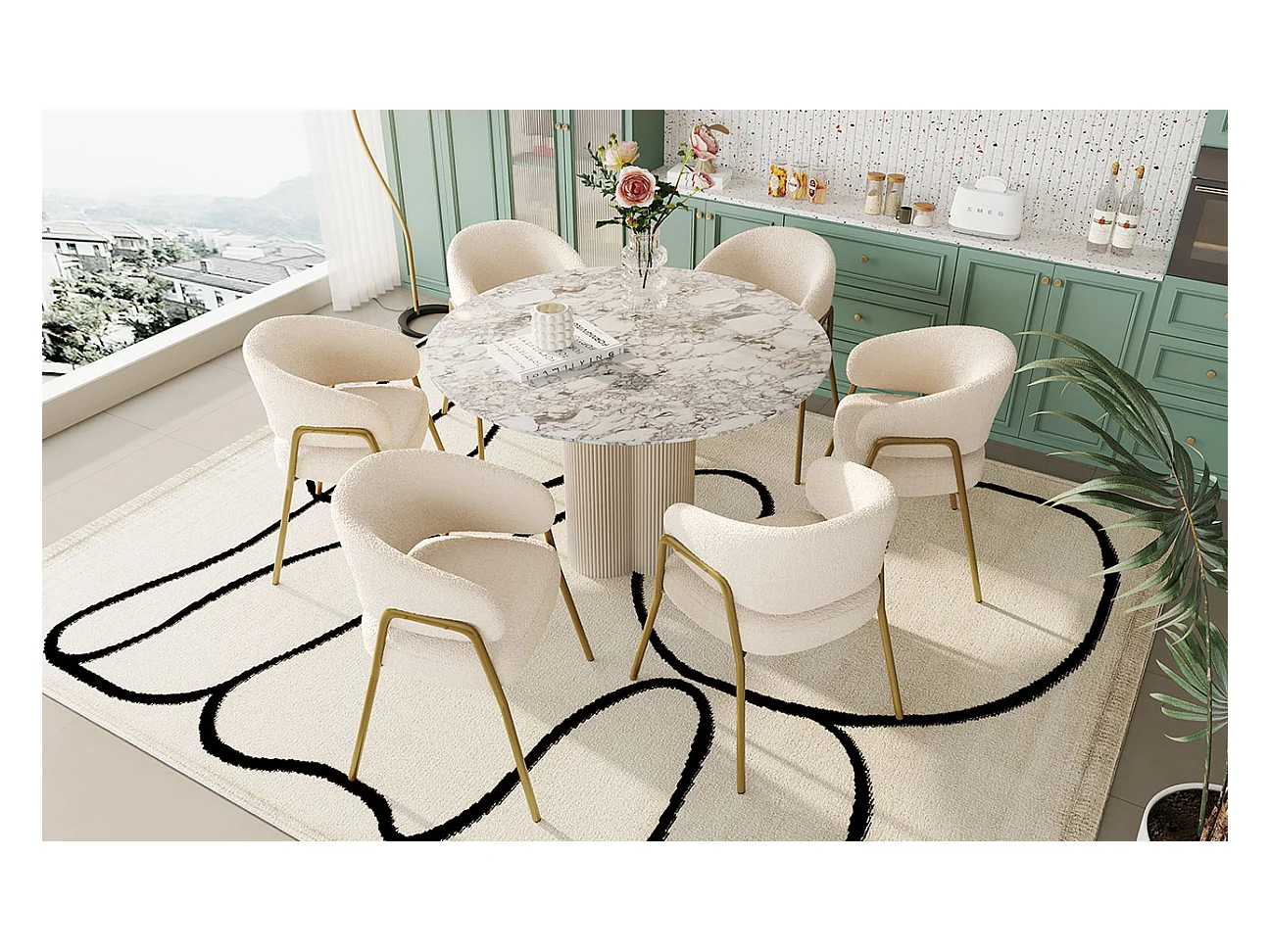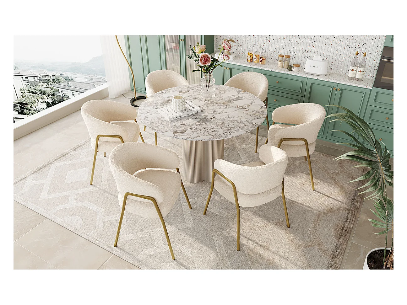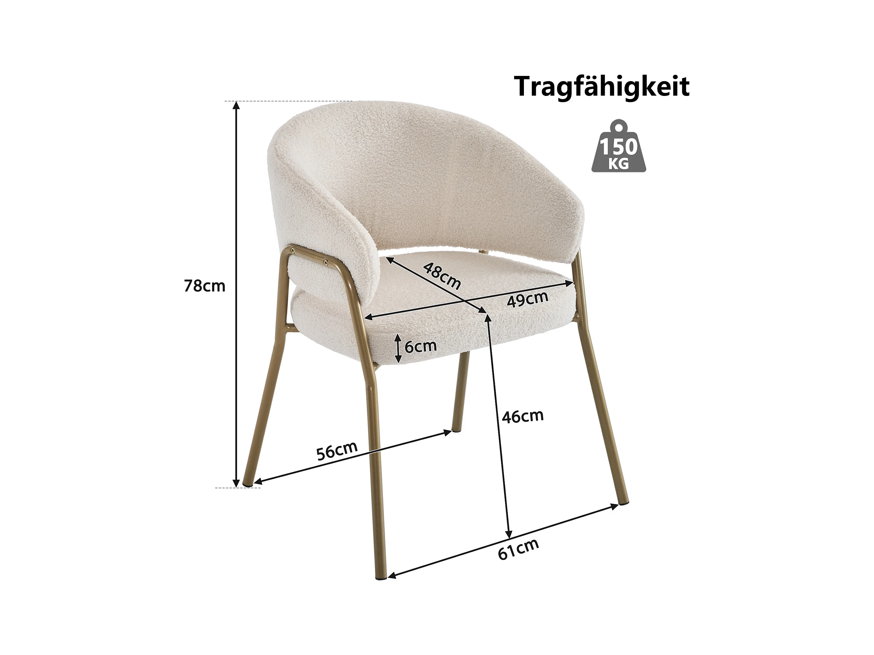 Cadeira de jantar em veludo branco com pernas douradas, design moderno, confortável, 49x48x78 cm, conjunto de 6