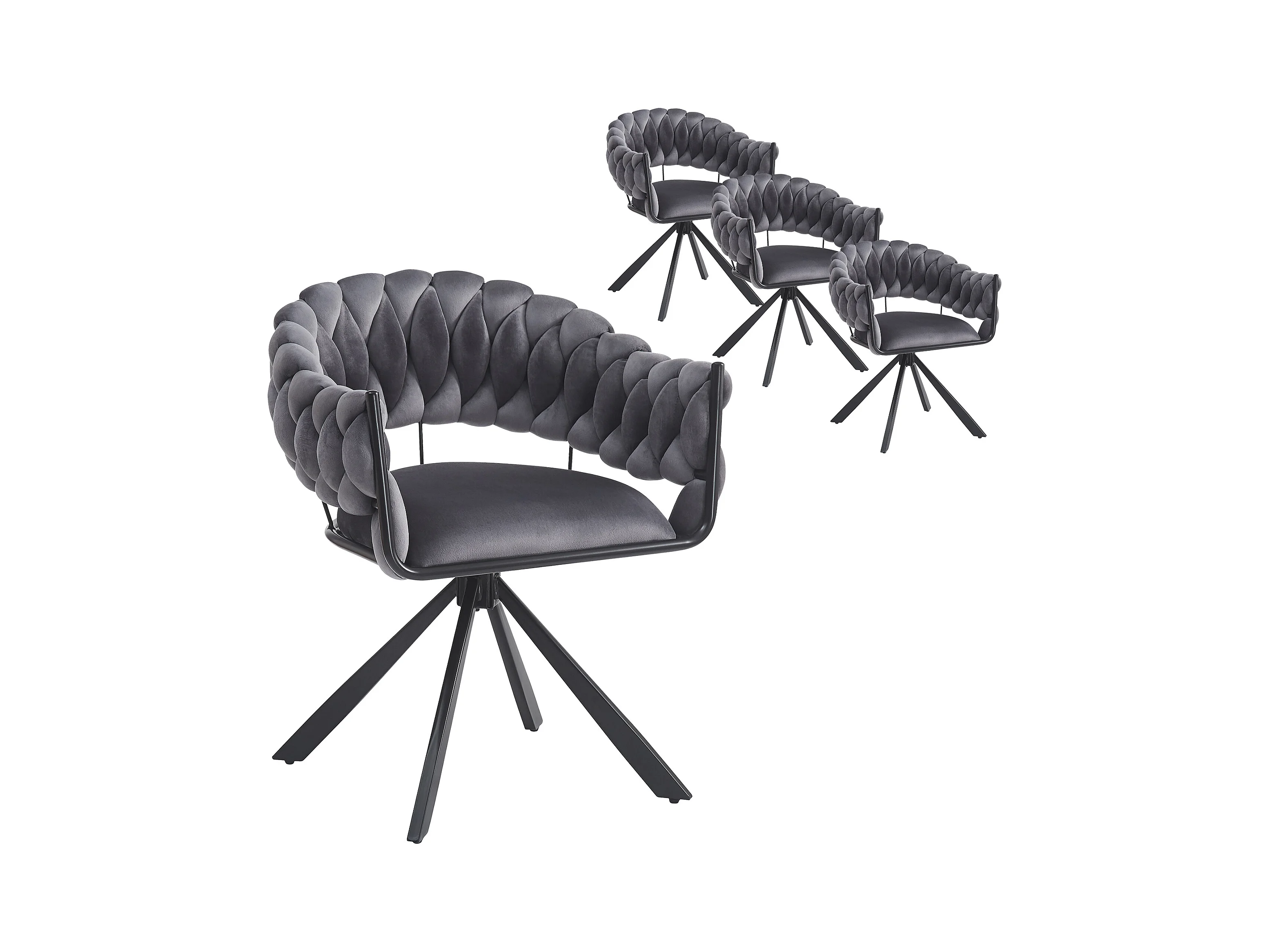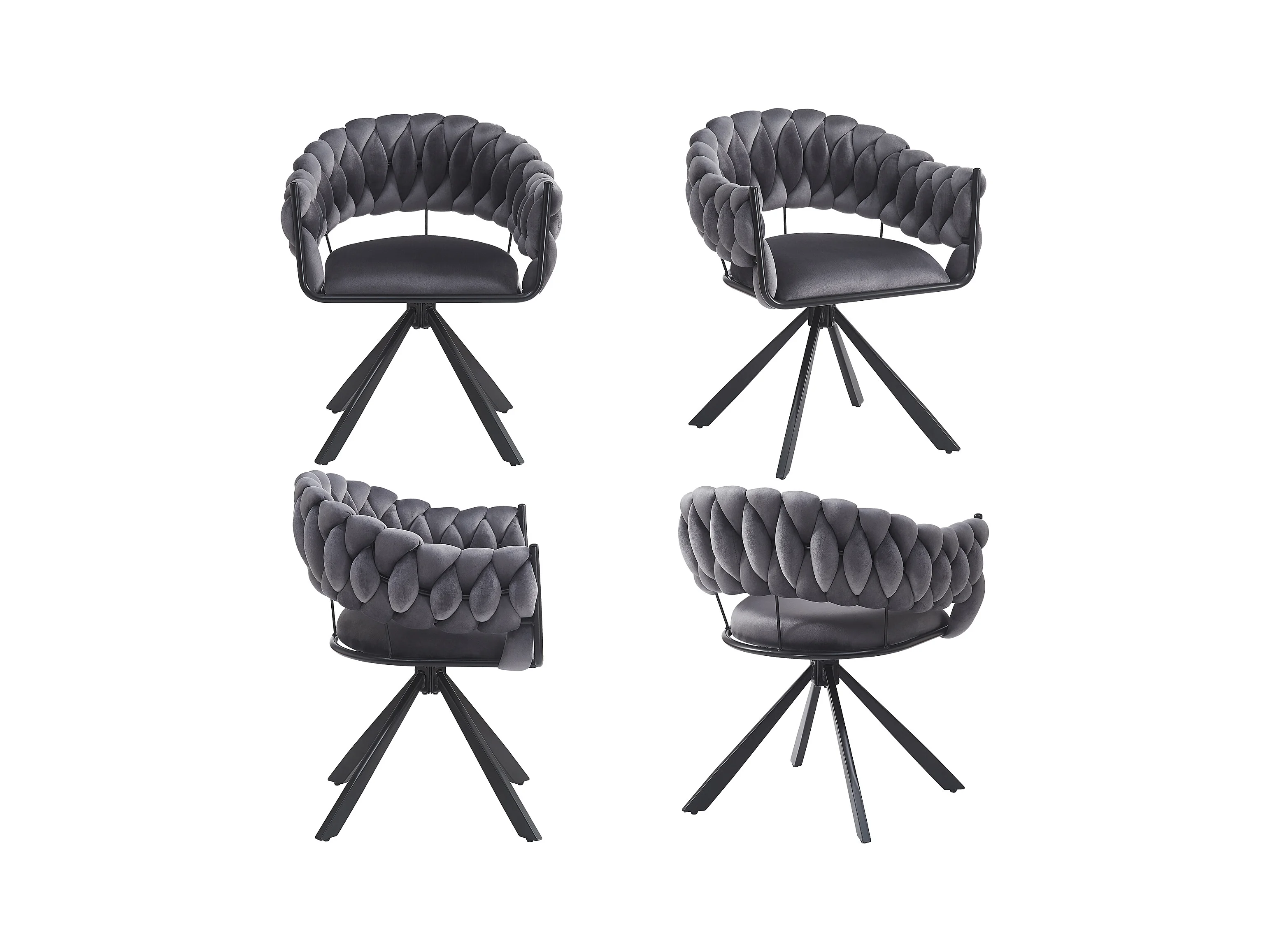 Cadeira giratória de veludo cinza com pernas de metal para sala de estar, quarto, escritório, design moderno, conjunto de 4