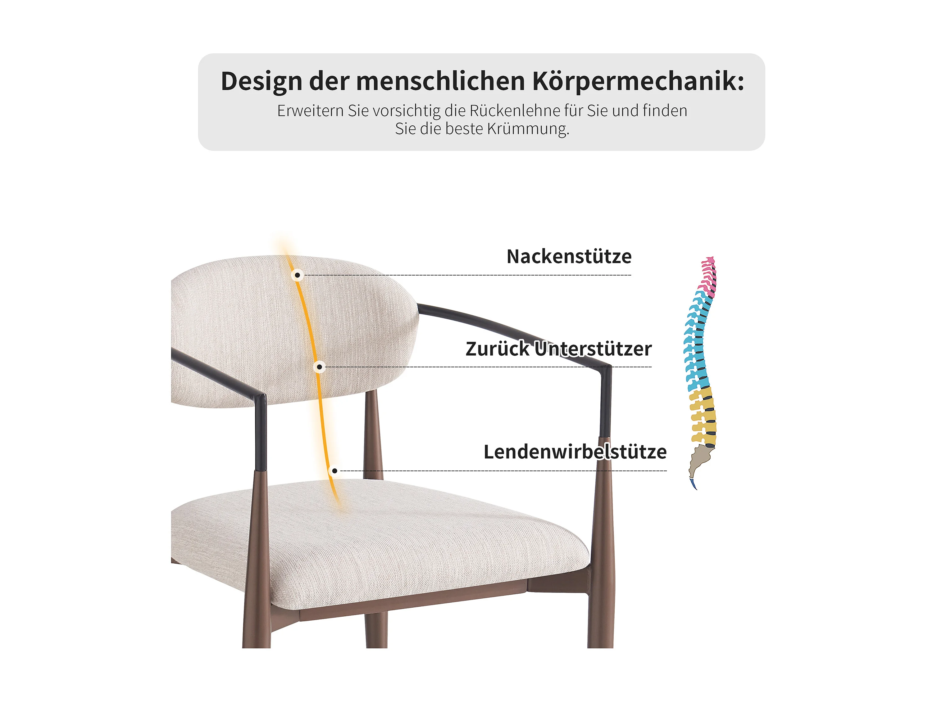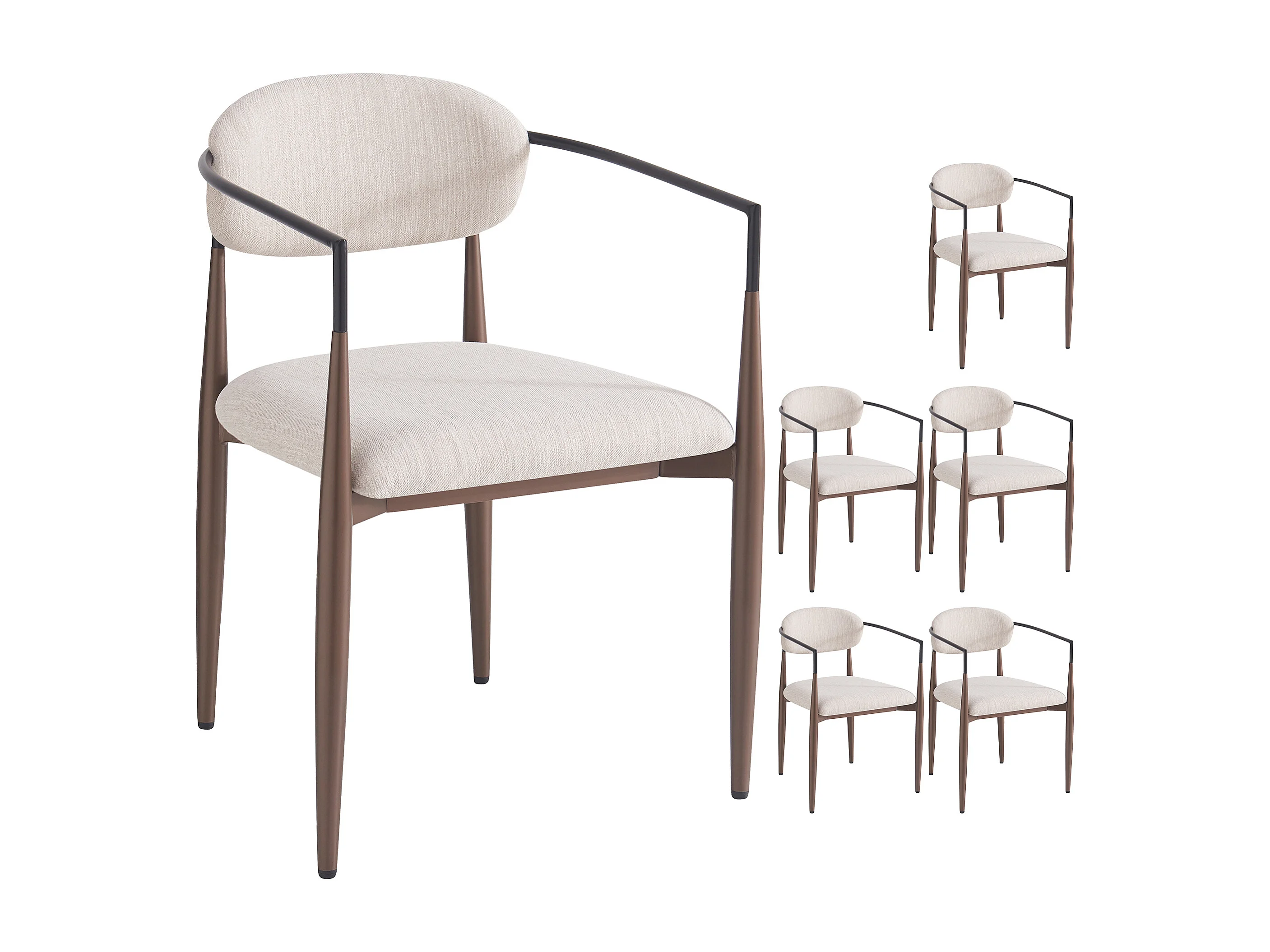 Cadeira de jantar ergonômica em linho com pernas de metal ajustáveis, design moderno, 57x60x81cm, conjunto de 6