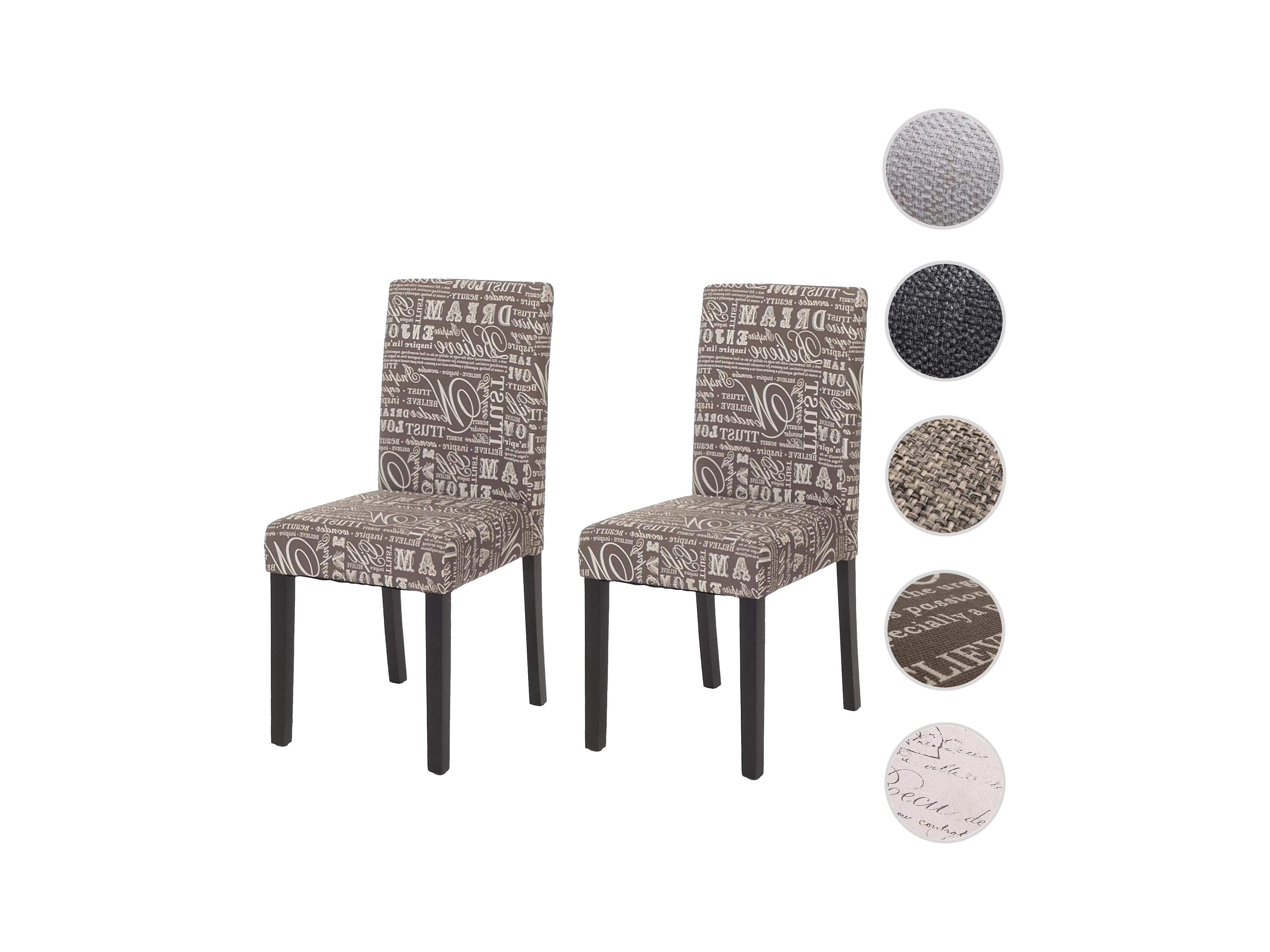 Cadeira de jantar Littau (conjunto de 2), têxtil com letras, cinzento, pernas escuras