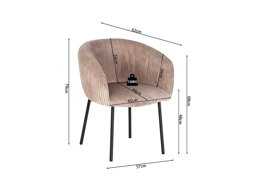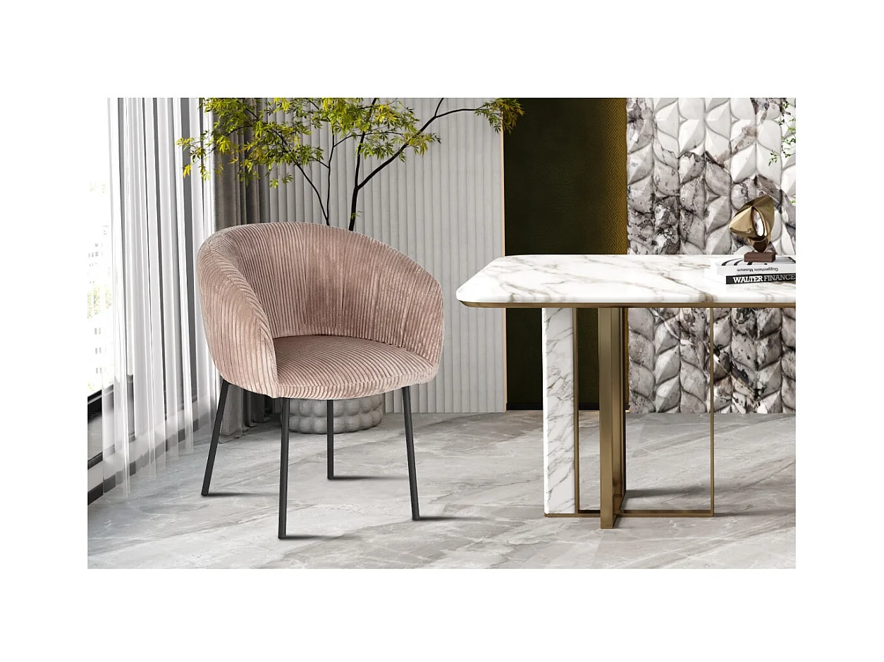 Cadeira de Jantar SEVILHA – Veludo Cotelê Areia – Com Braços – Pés de Metal Preto – Estilo Design / Industrial