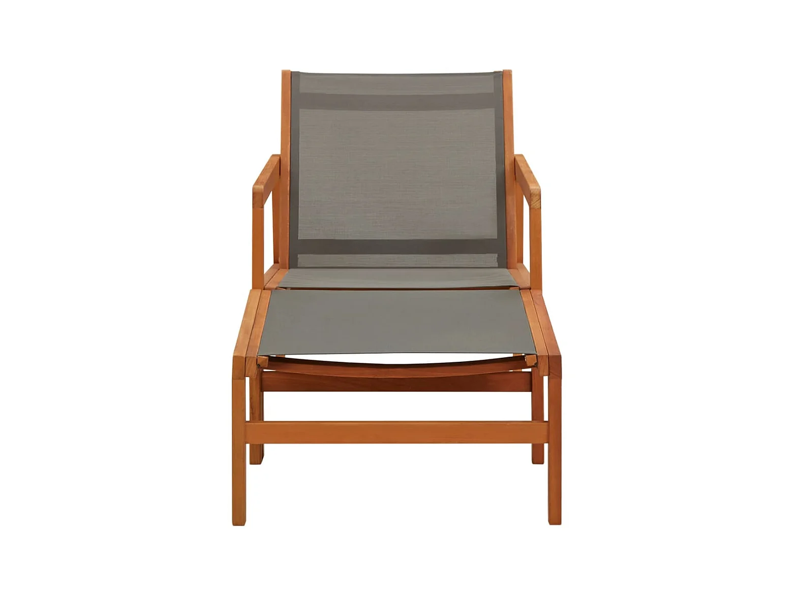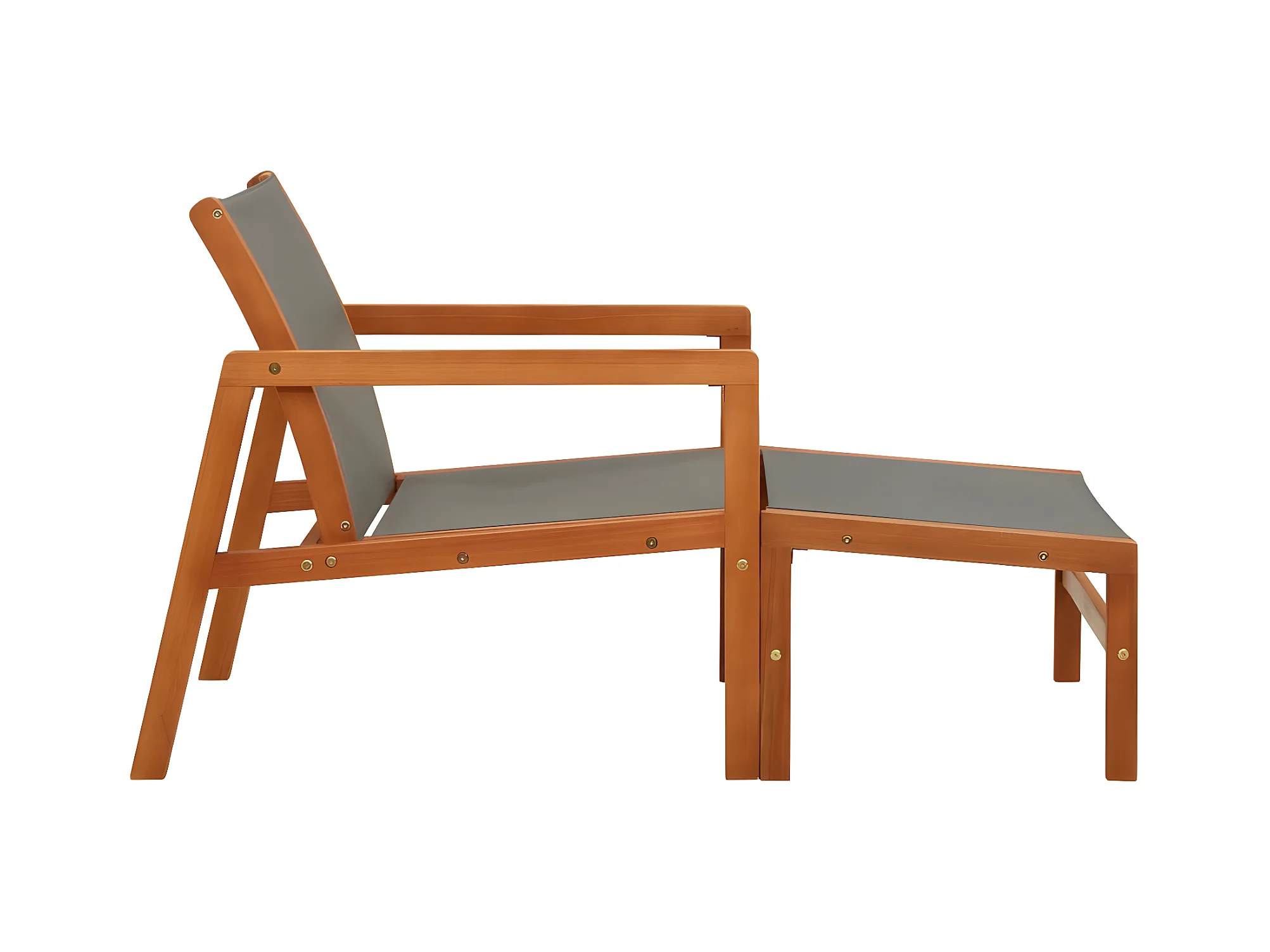 Cadeira de jardim c/ apoio pés eucalipto maciço/textilene cinza PT476308