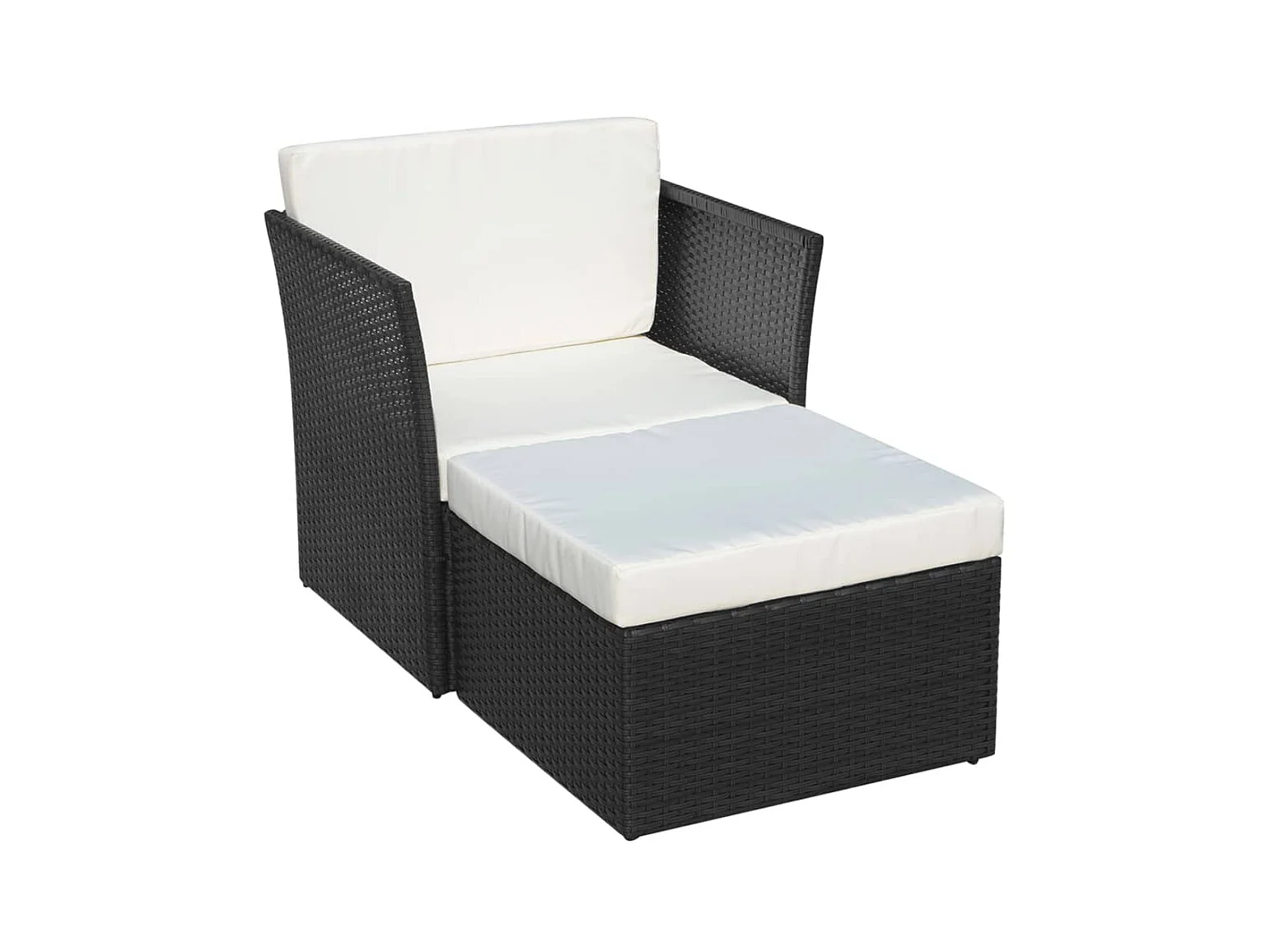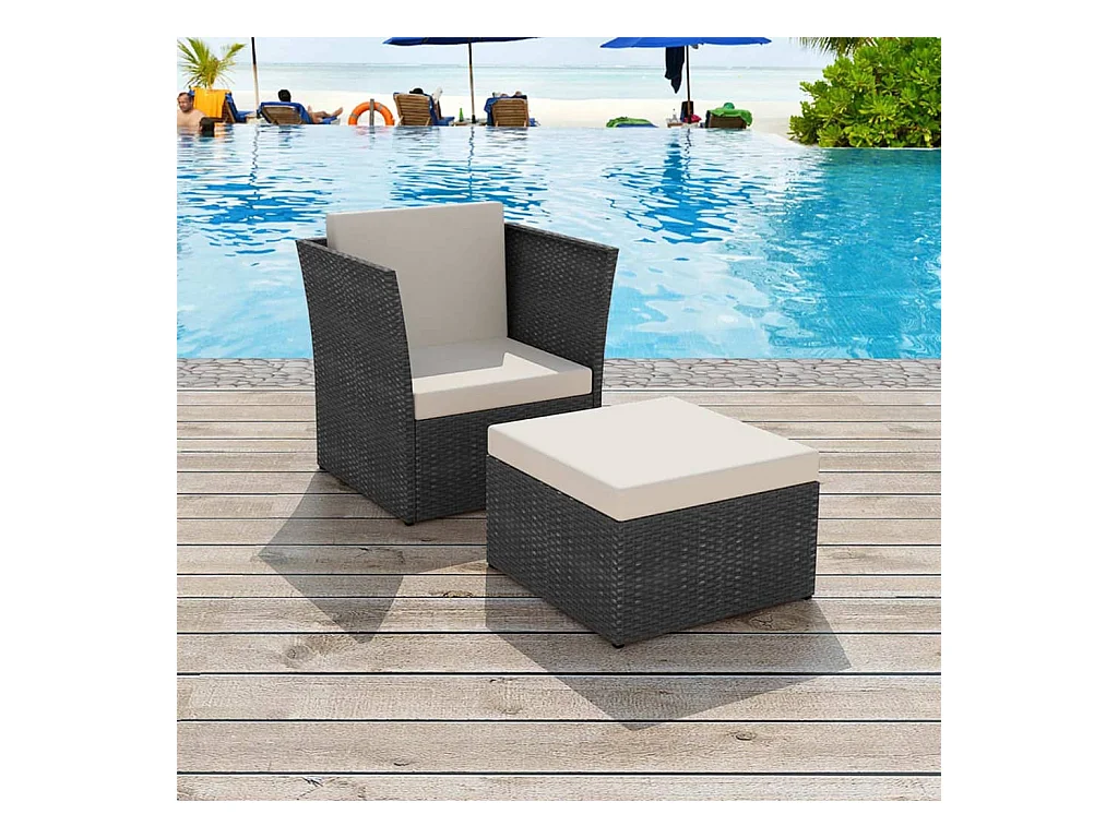 Cadeira e banco de exterior com almofadões vime PE preto PT485149