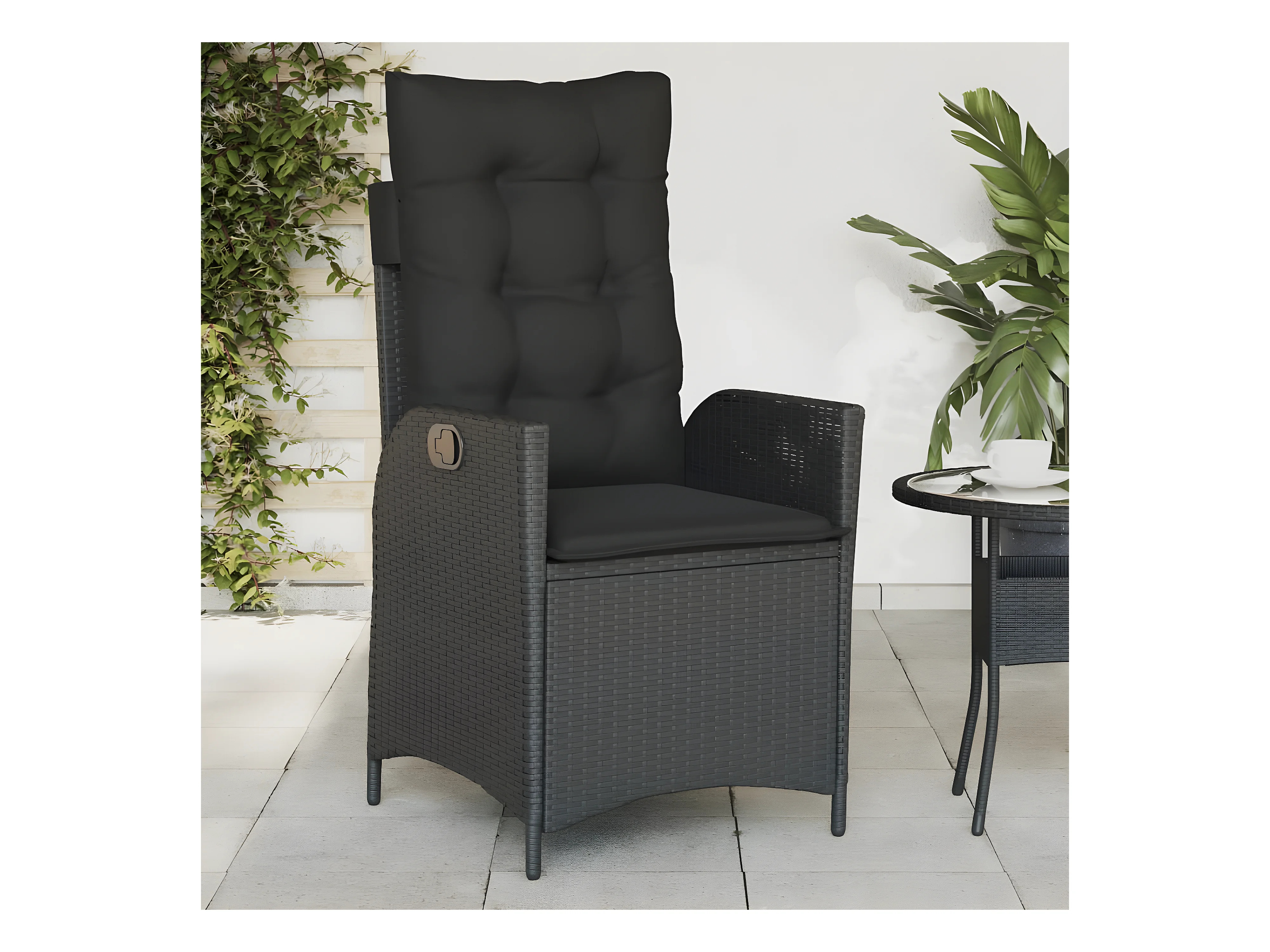 Cadeira de jardim reclinável c/ almofadões vime PE preto PT177680