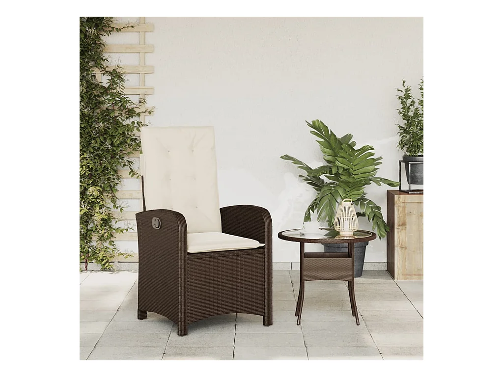 Cadeira de jardim reclinável com almofadões vime PE castanho PT386956