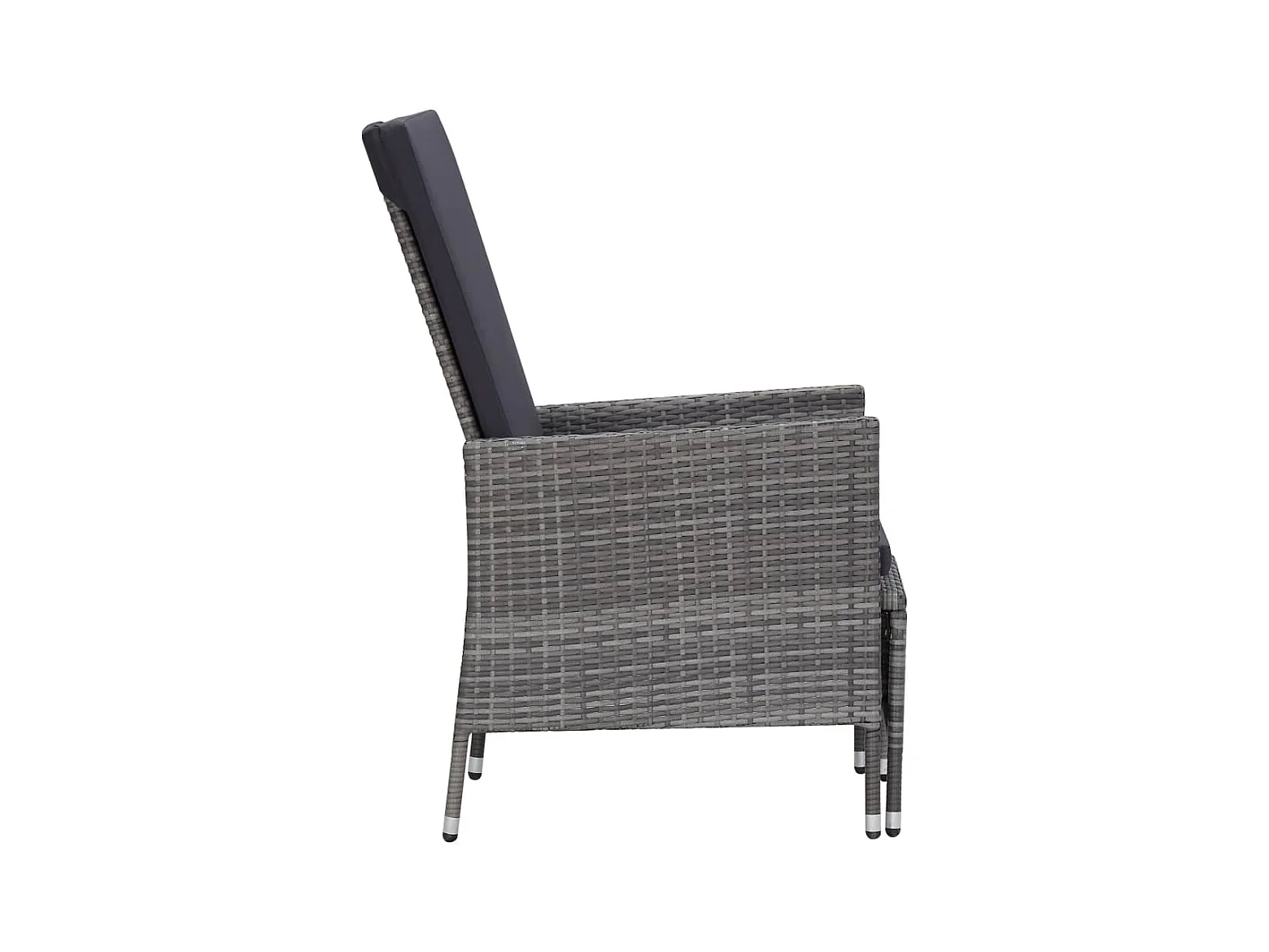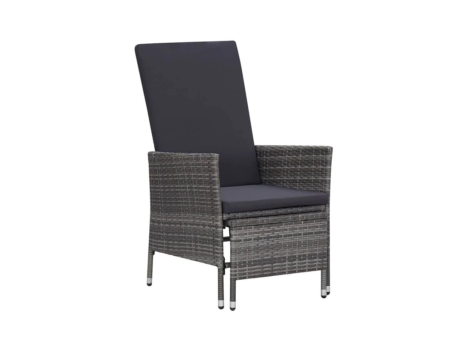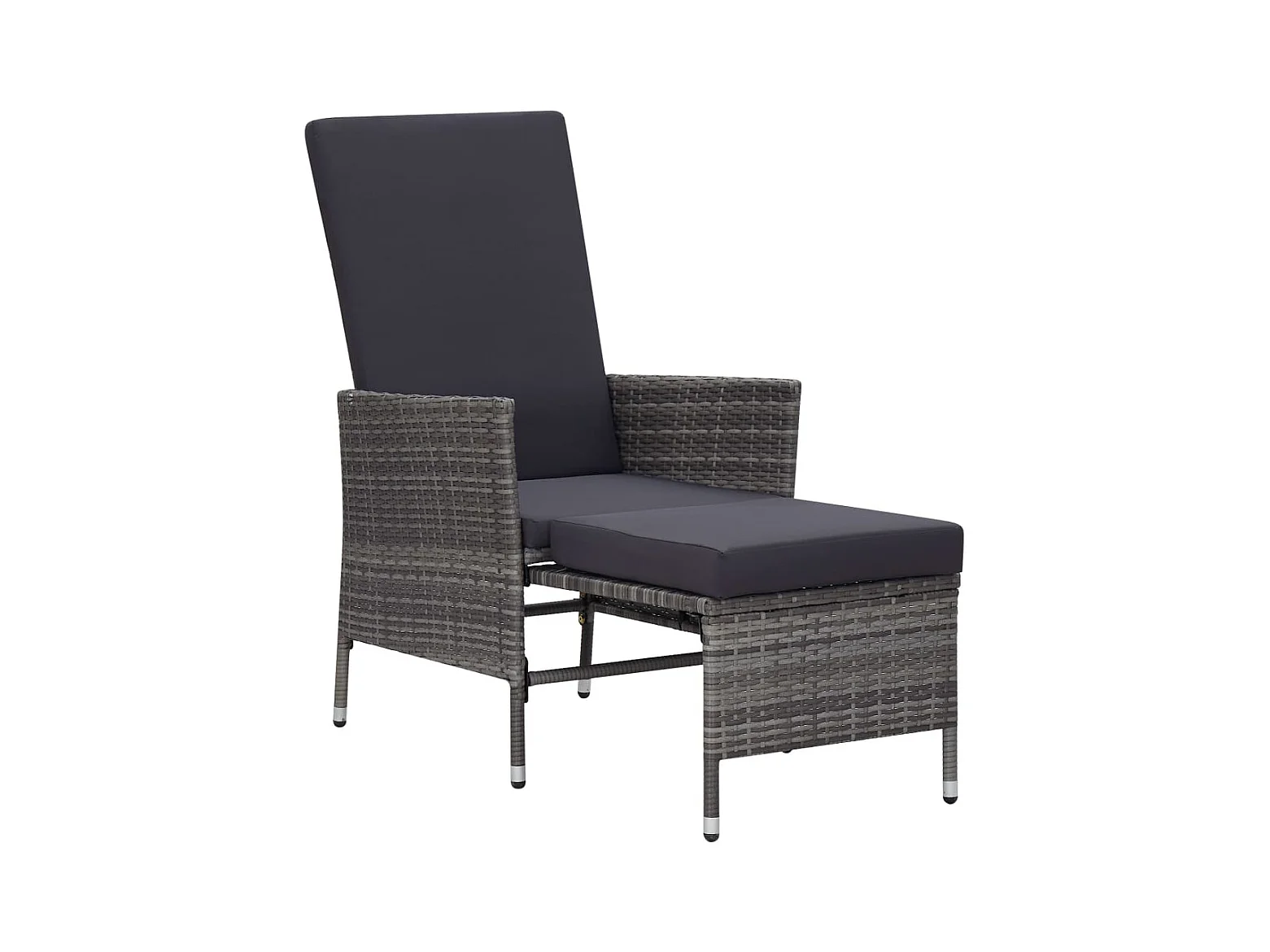 Cadeira jardim reclinável c/ almofadões vime PE cinzento-escuro PT961267