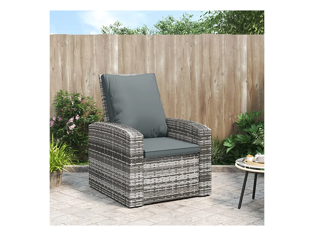 Cadeira de jardim reclinável com almofadões vime PE cinzento PT769689