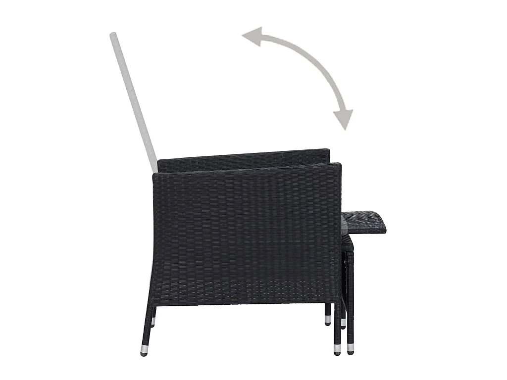 Cadeira de jardim reclinável com almofadões vime PE preto PT373408