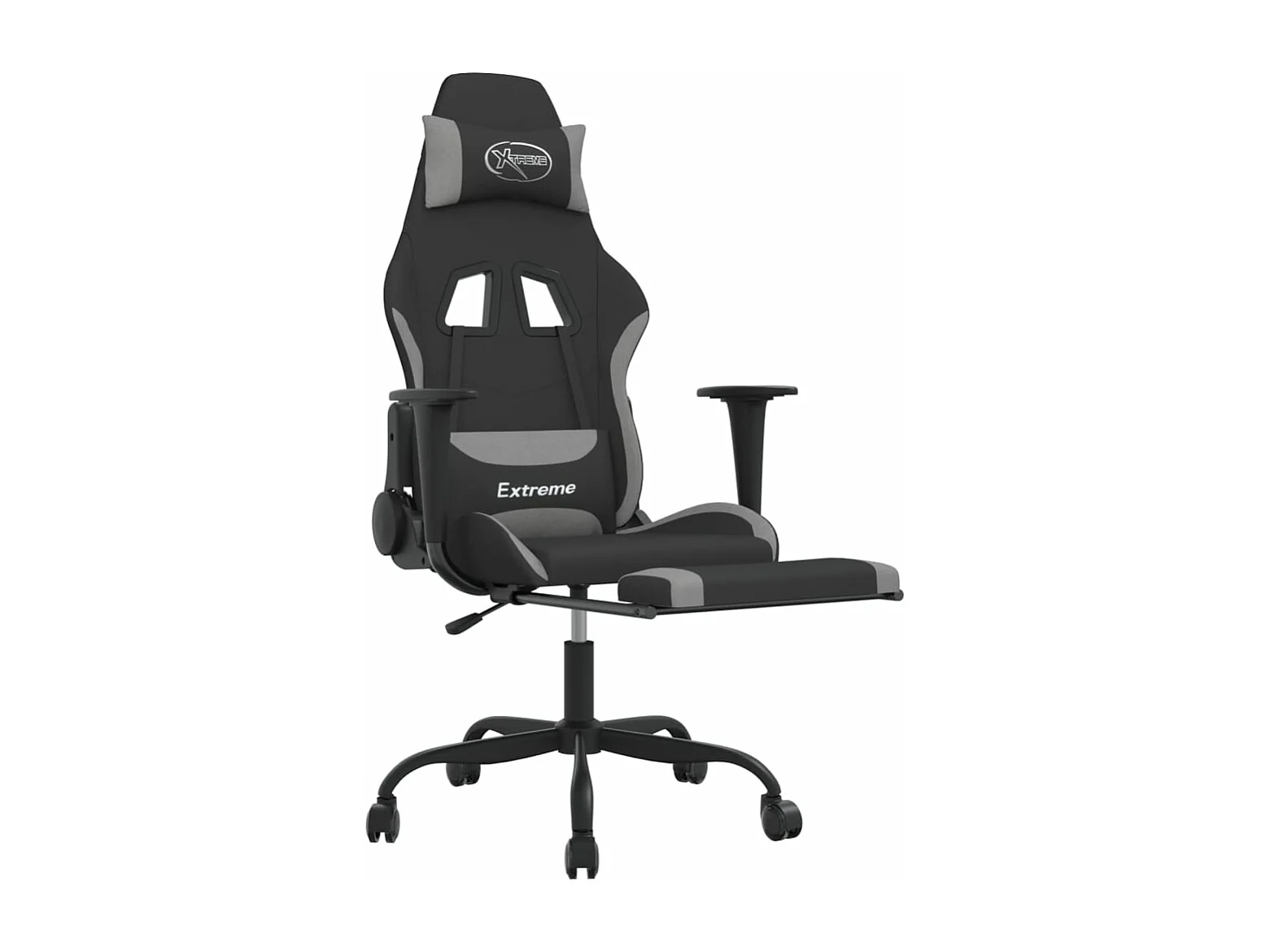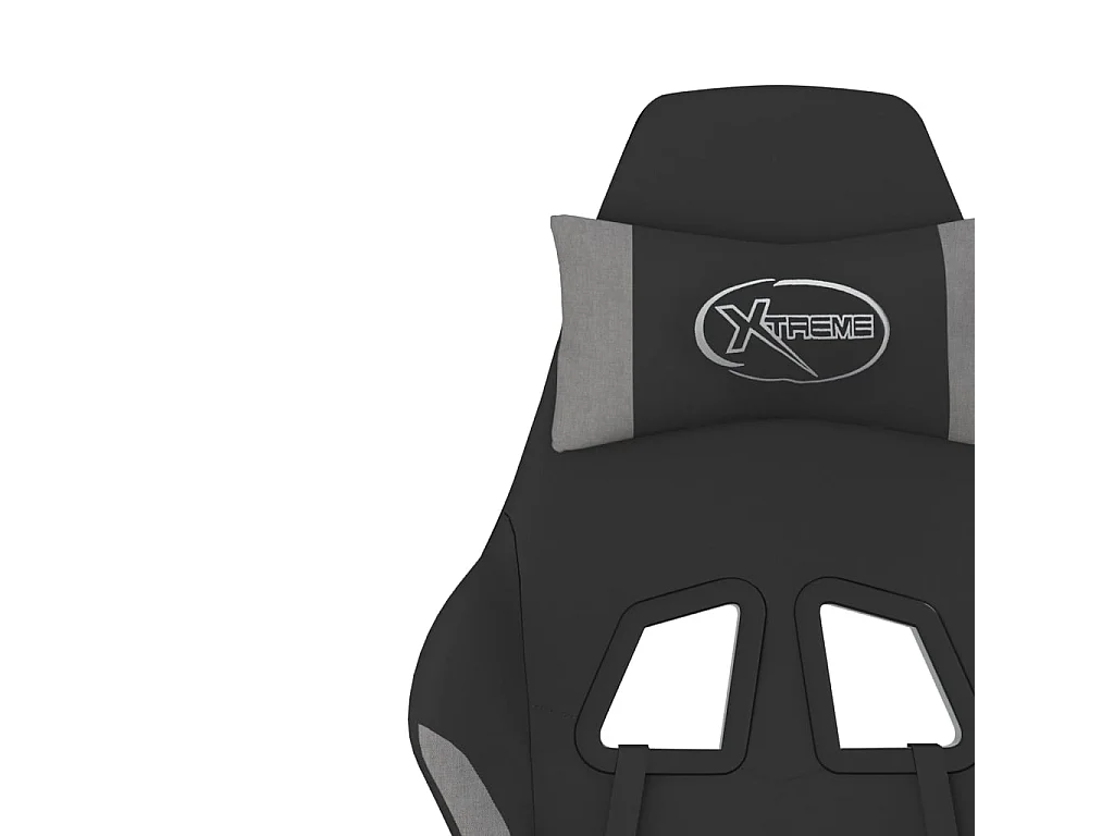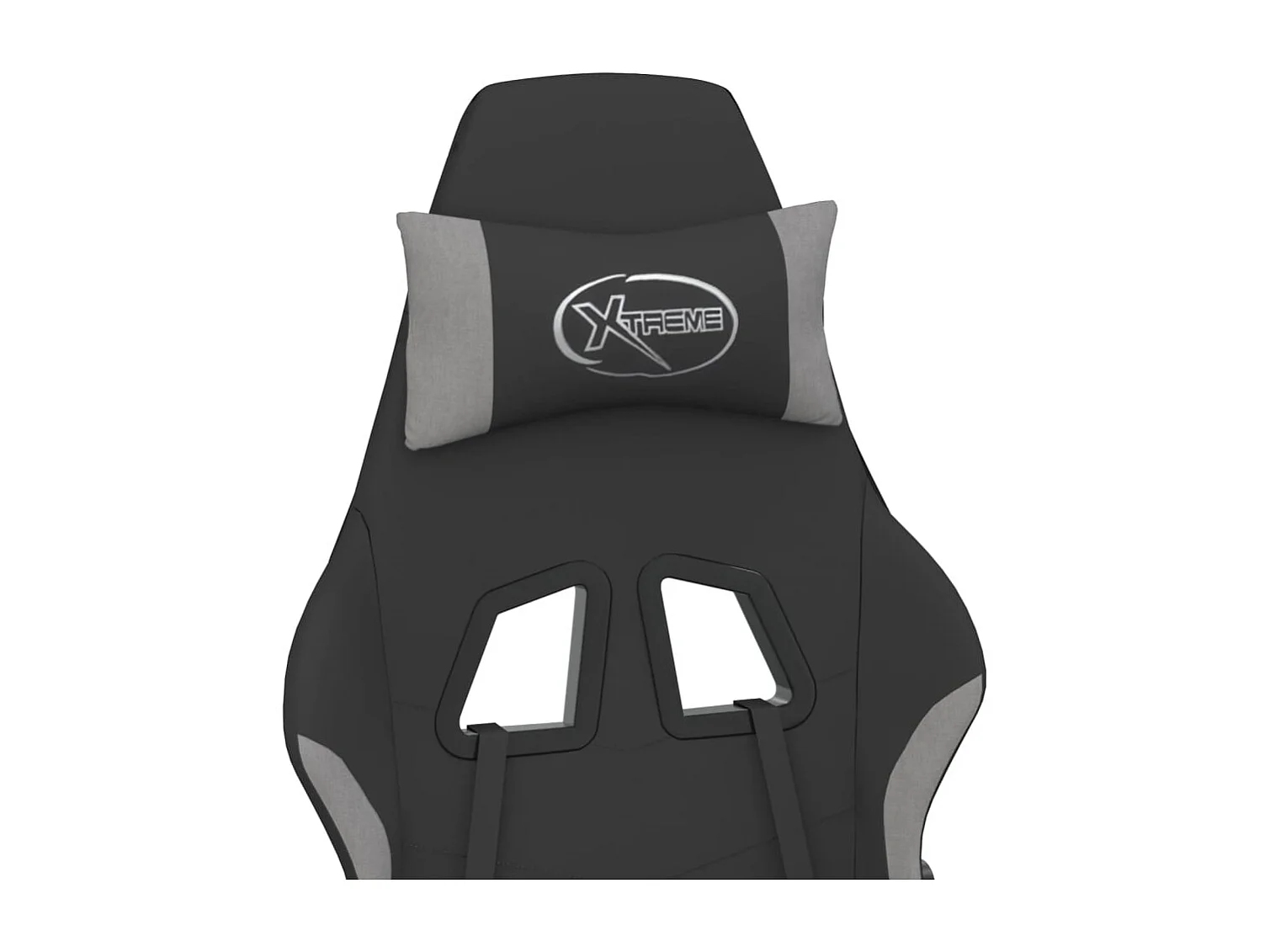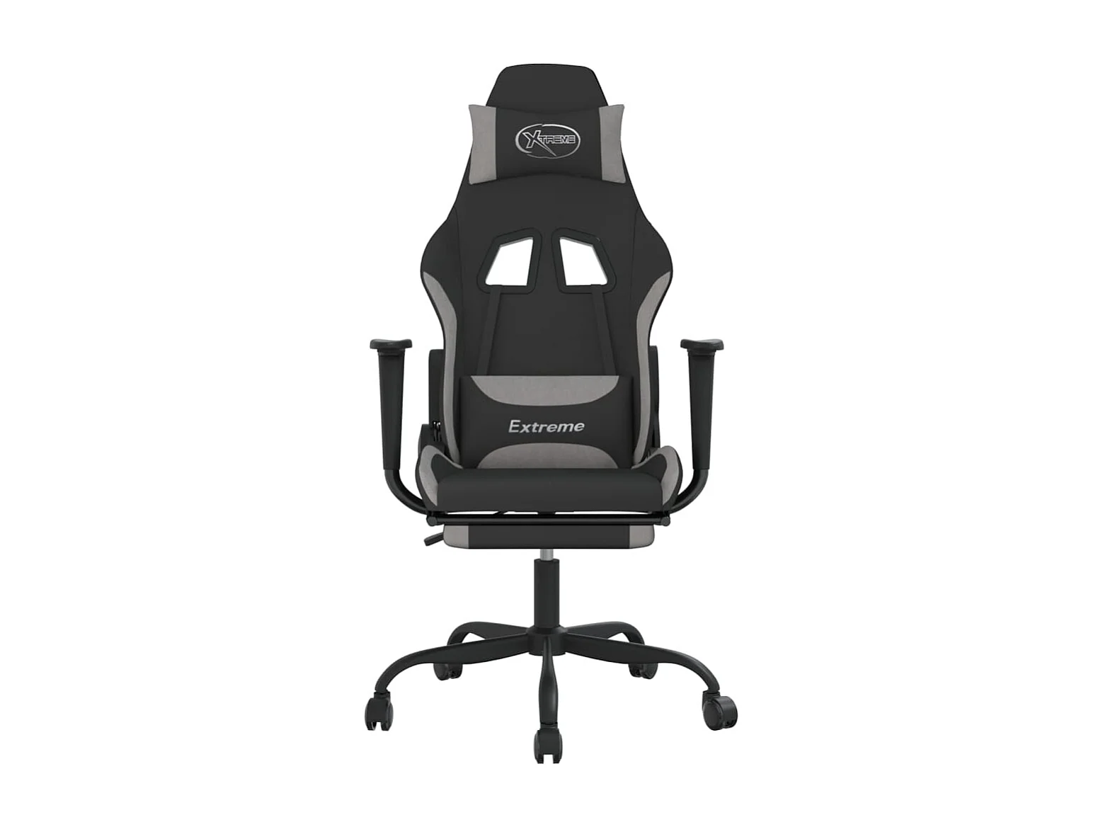 Cadeira de jogos para massagem com apoio para os pés em tecido preto e cinza claro