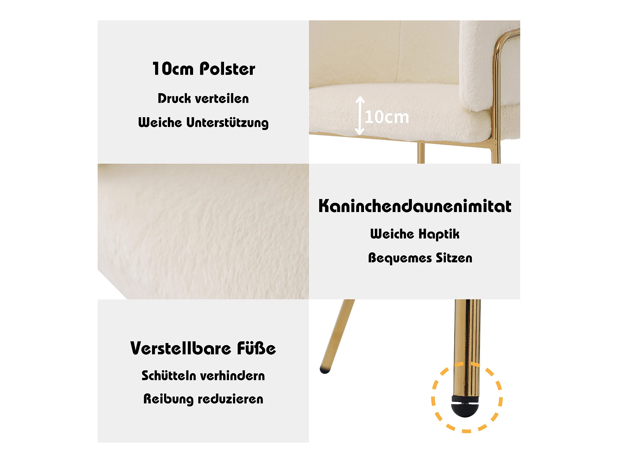 Cadeira de lazer bege com veludo sintético de coelho e pernas de metal estáveis para sala de estar e quarto