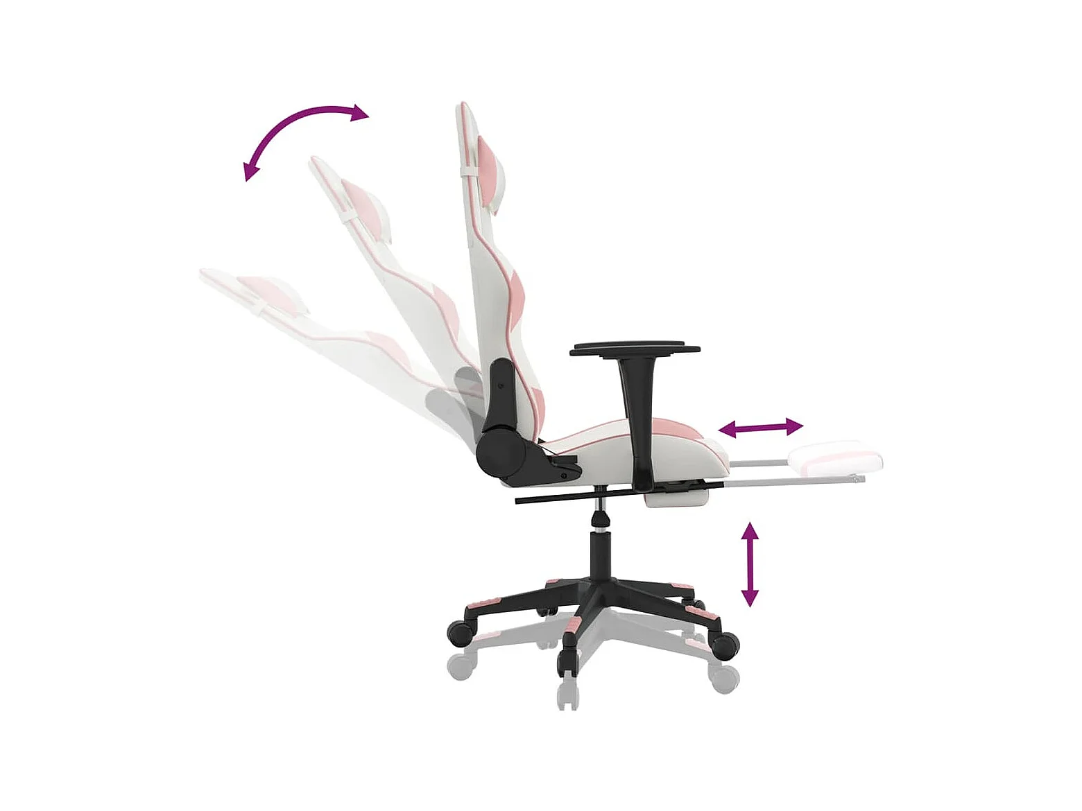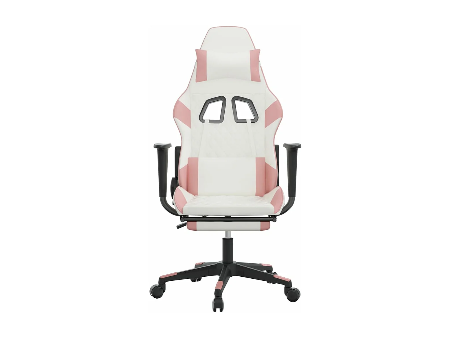 Cadeira de massagem para jogos com apoio para os pés em couro sintético branco e rosa