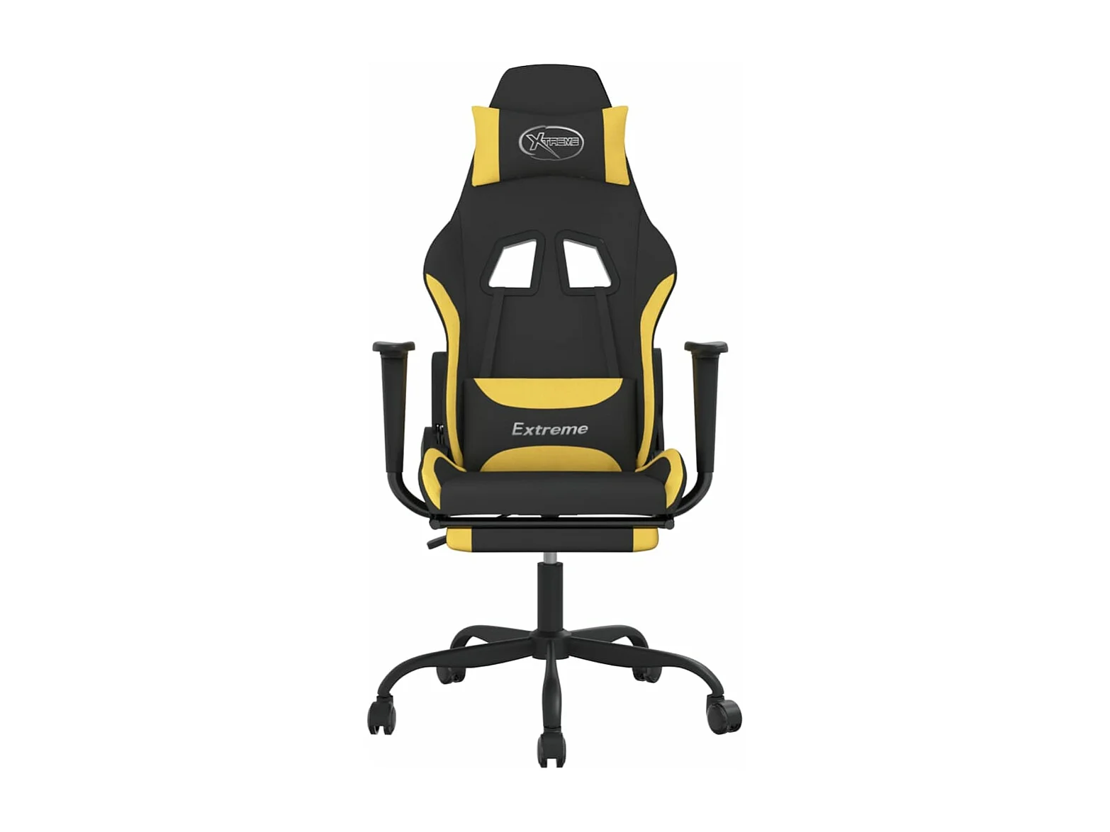 Cadeira de massagem para jogos com apoio para os pés em tecido preto e amarelo