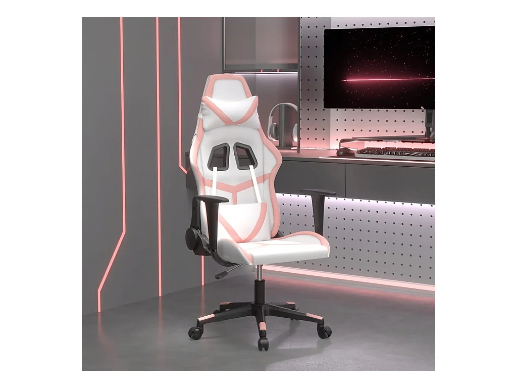 Cadeira de jogos em pele sintética branca e rosa