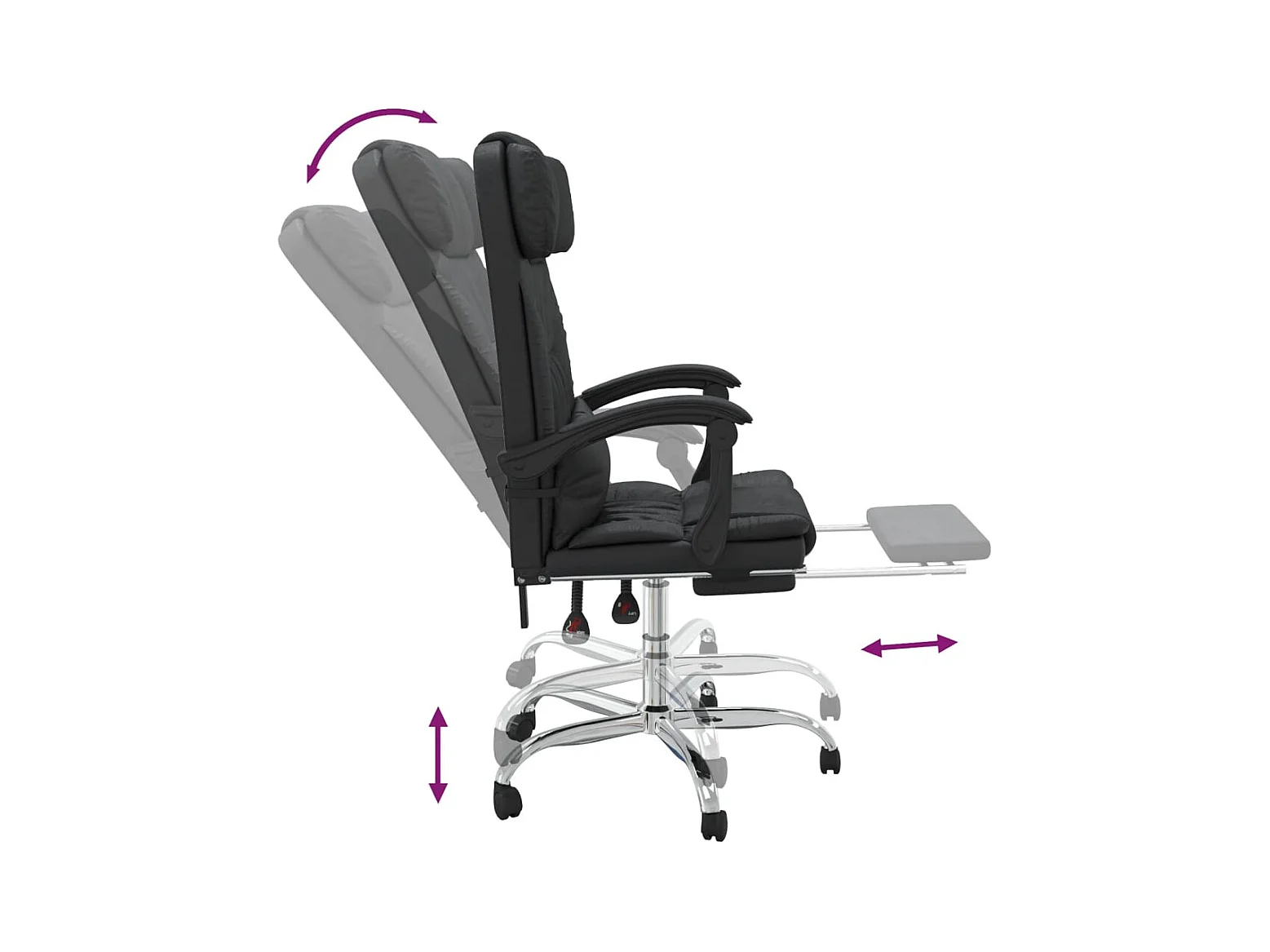 Cadeira de escritório em microfibra preta com encosto giratório de 145° e apoio para os pés 120 kg