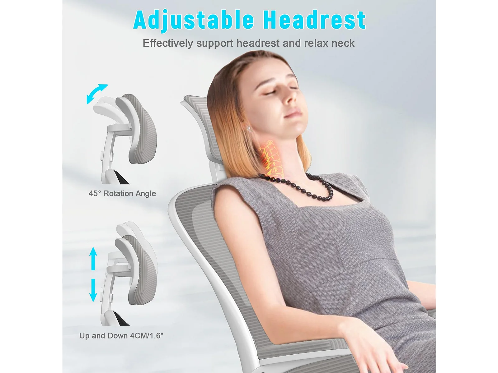 Cadeira de mesa de escritório com apoio de cabeça ajustável e suporte lombar de suporte executivo giratório para casa e escritório
