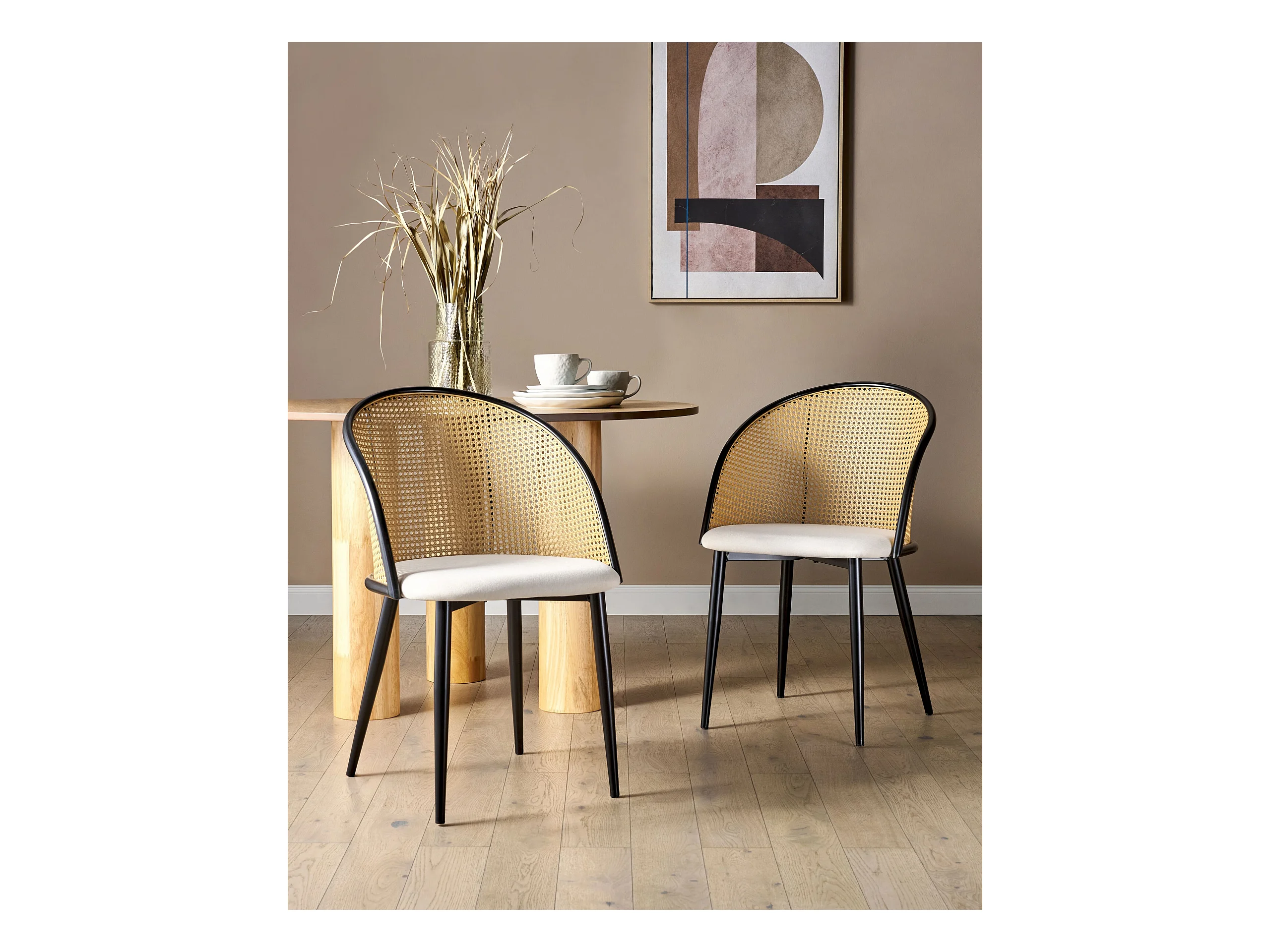 Mesa de jantar redonda retrô com detalhes em rattan natural (80cm) - North - Preto