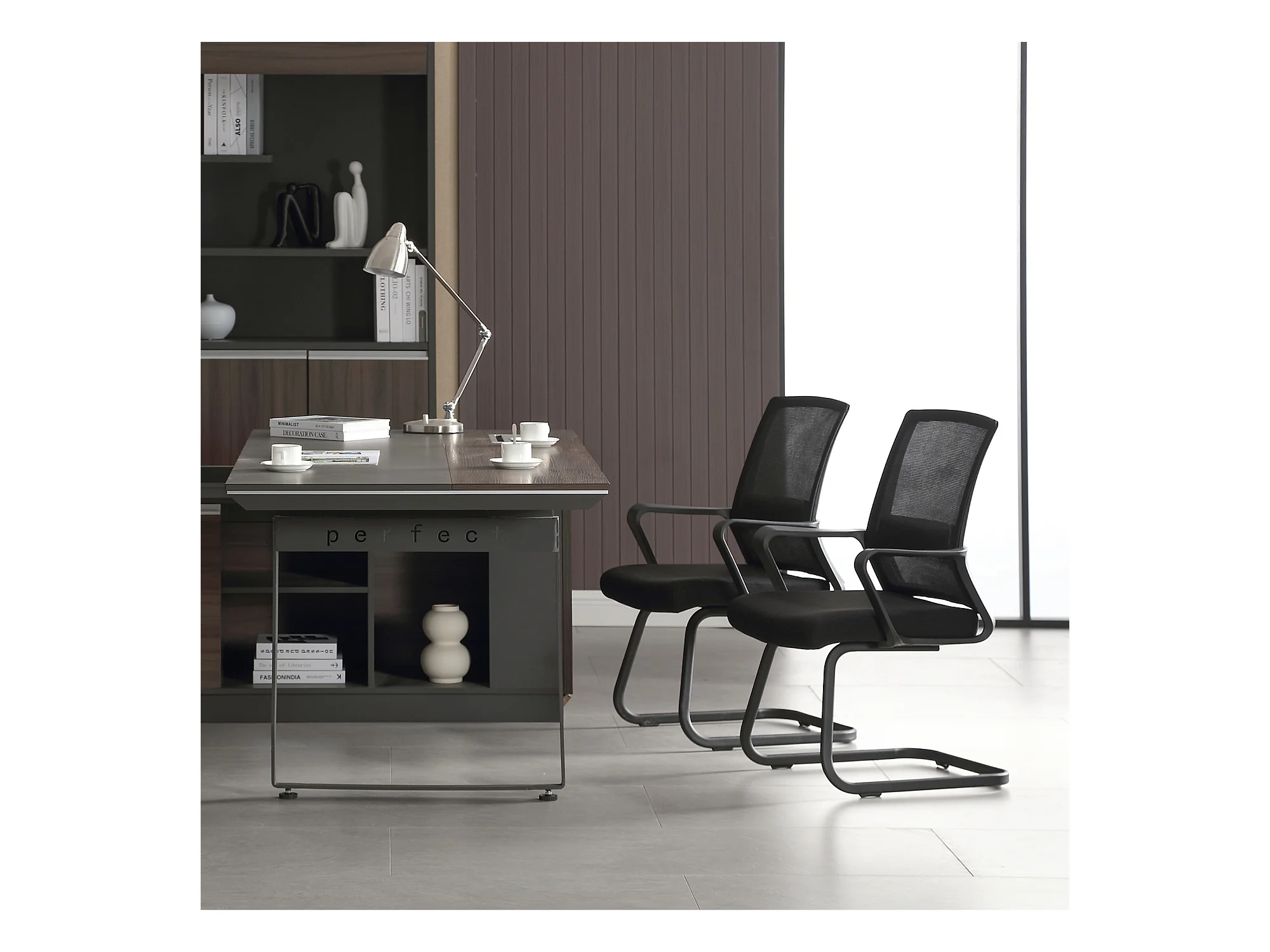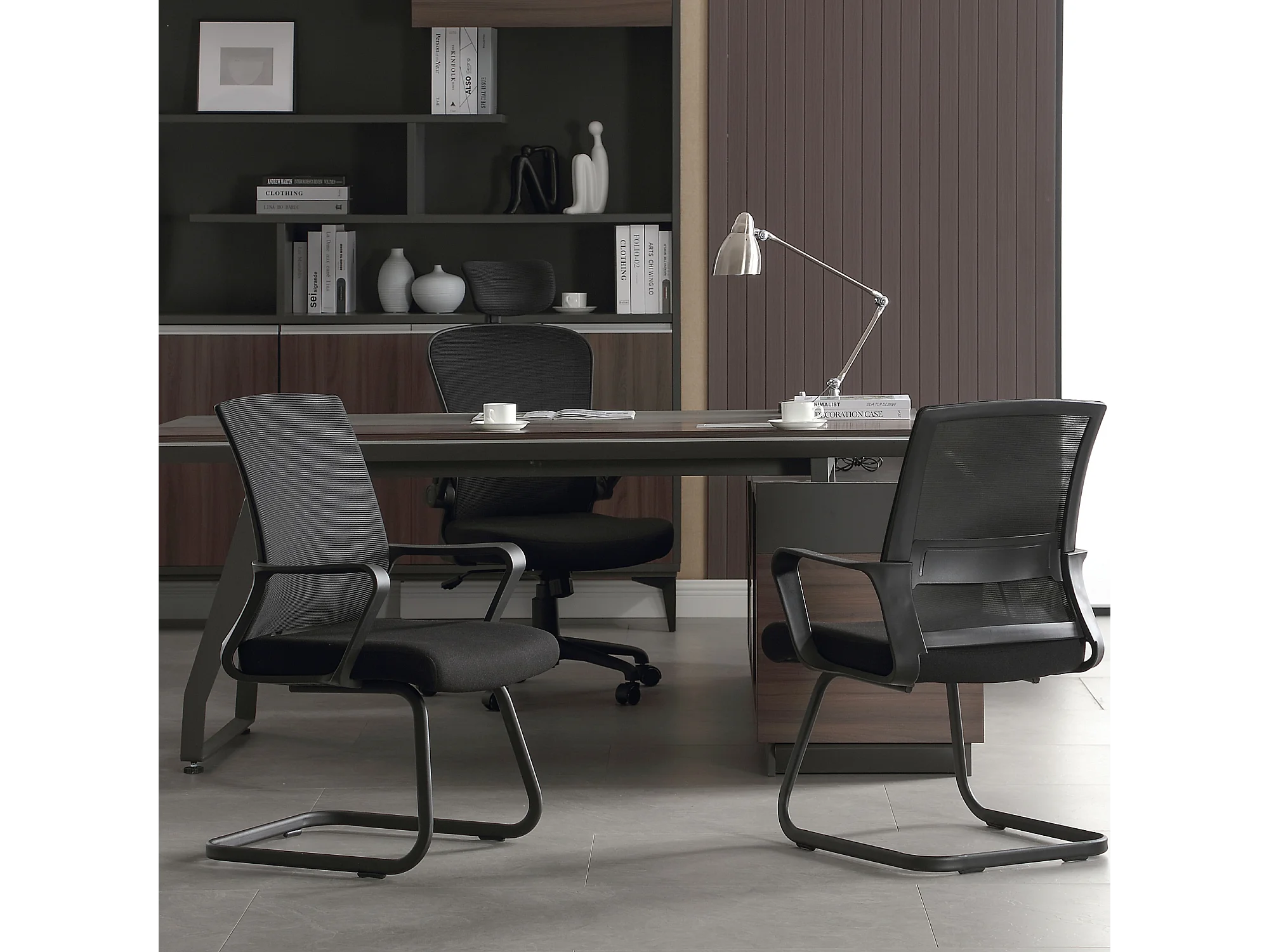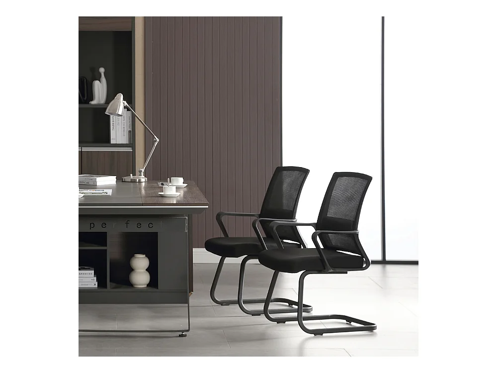 Cadeira de sala de espera Conjunto de escritório 2 Cadeira de conferência ergonómica para reuniões com apoios de braços tecido respirável Preto - ZIK