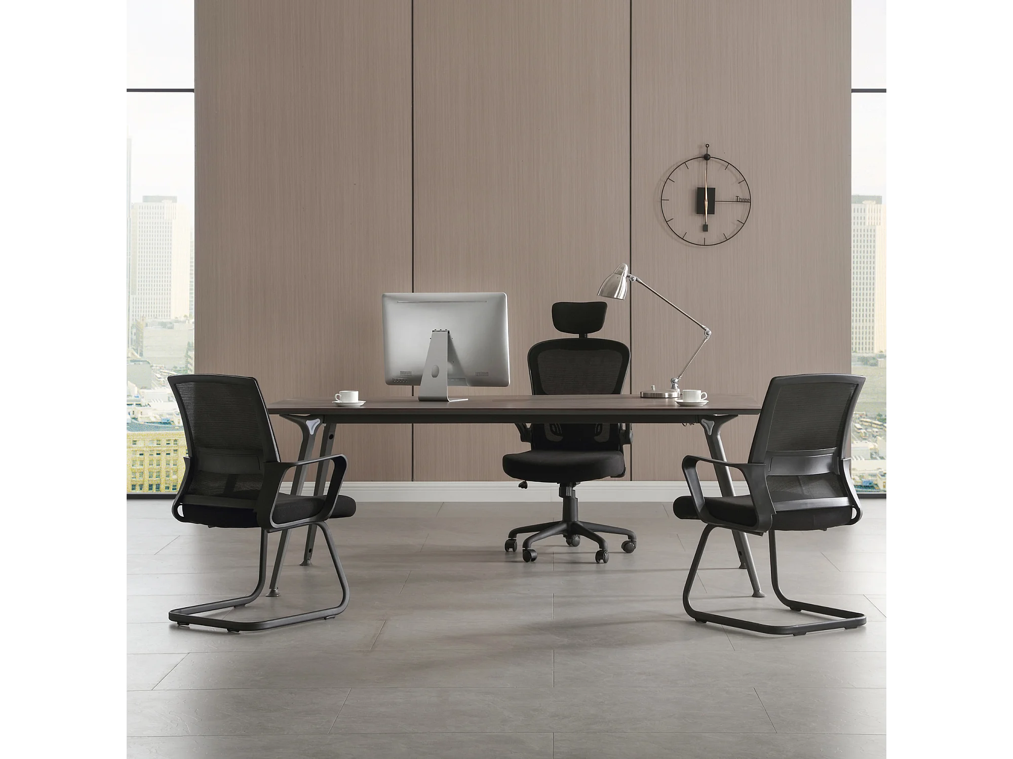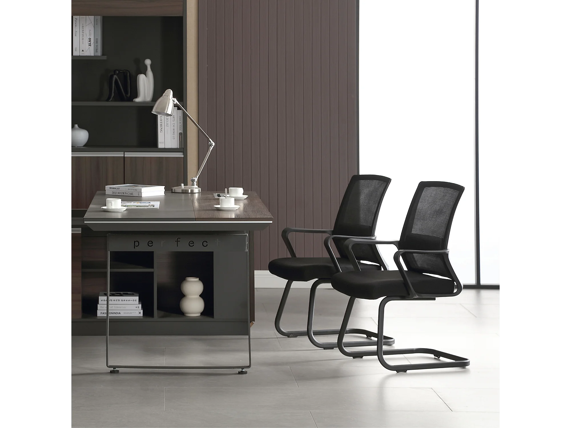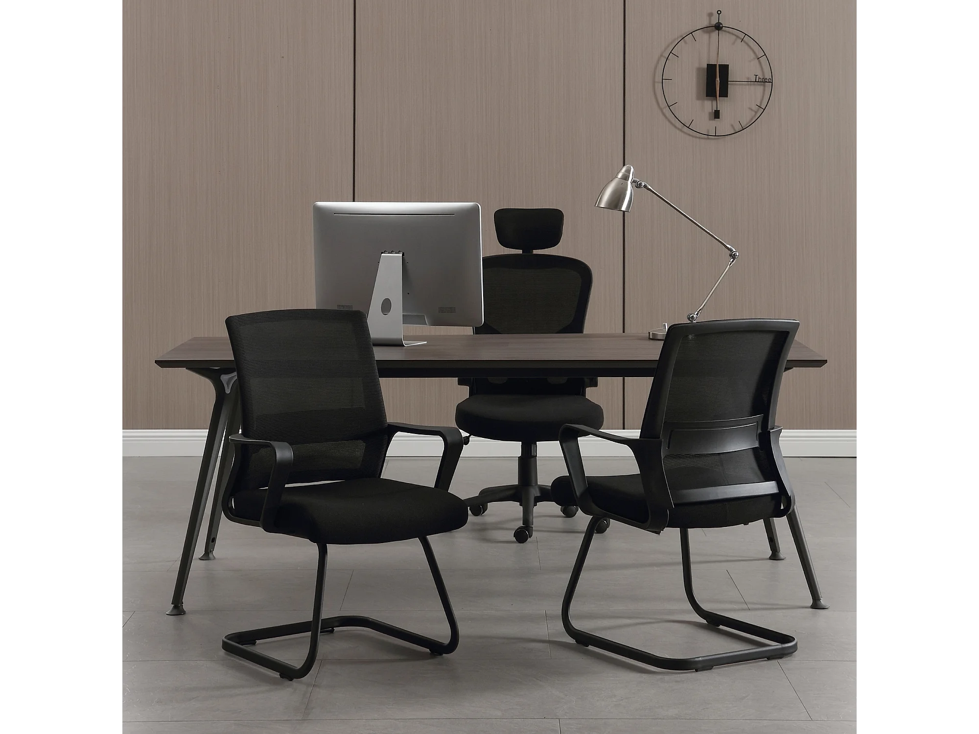 Cadeira de sala de espera Conjunto de escritório 2 Cadeira de conferência ergonómica para reuniões com apoios de braços tecido respirável Preto - ZIK