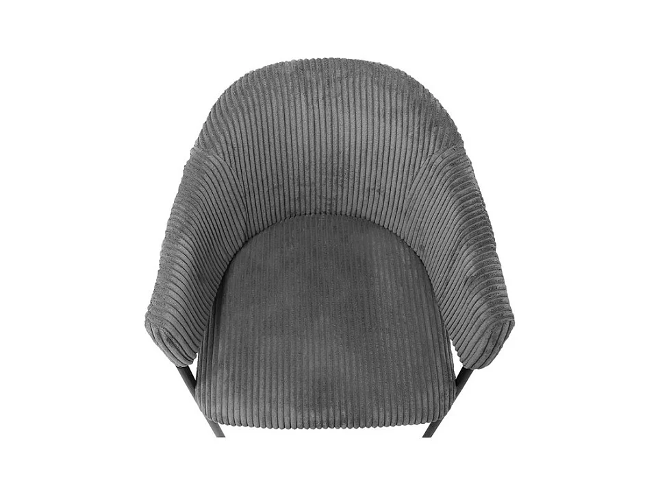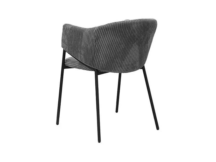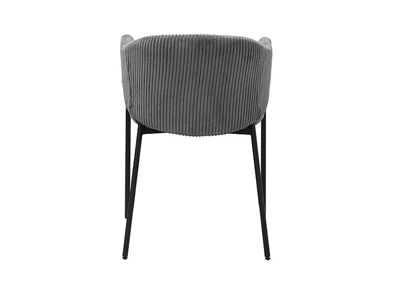 Cadeira de sala de jantar SEVILLE – Veludo cotelê cinza – Com braços – Pés de metal preto – Estilo design / industrial
