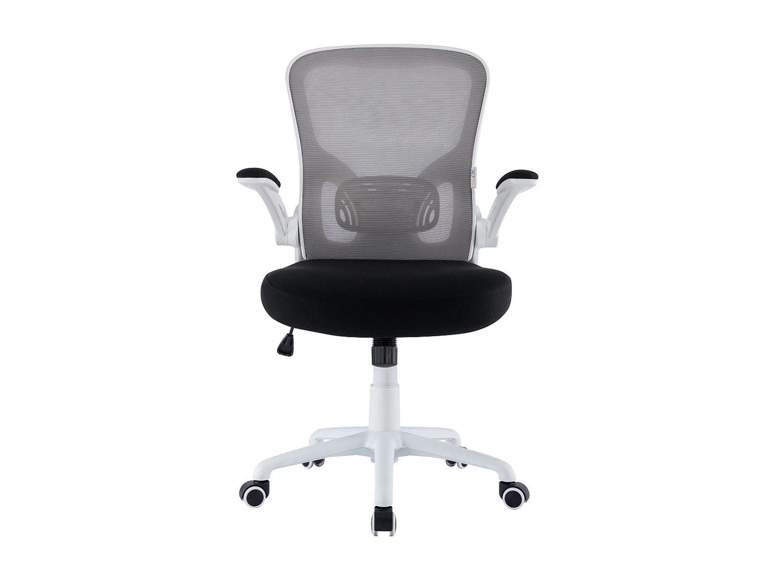 Cadeira de escritório ergonómica com apoios para os braços e apoio de cabeça oscilante, branca e cinzenta - ZIK