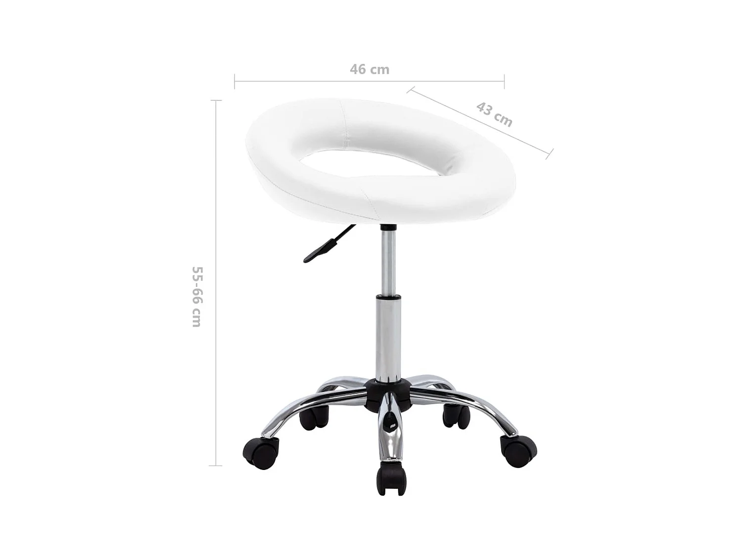Banco de trabalho ajustável com encosto de PU para escritório, salão de beleza e spa, branco, 35 x A72-84 cm