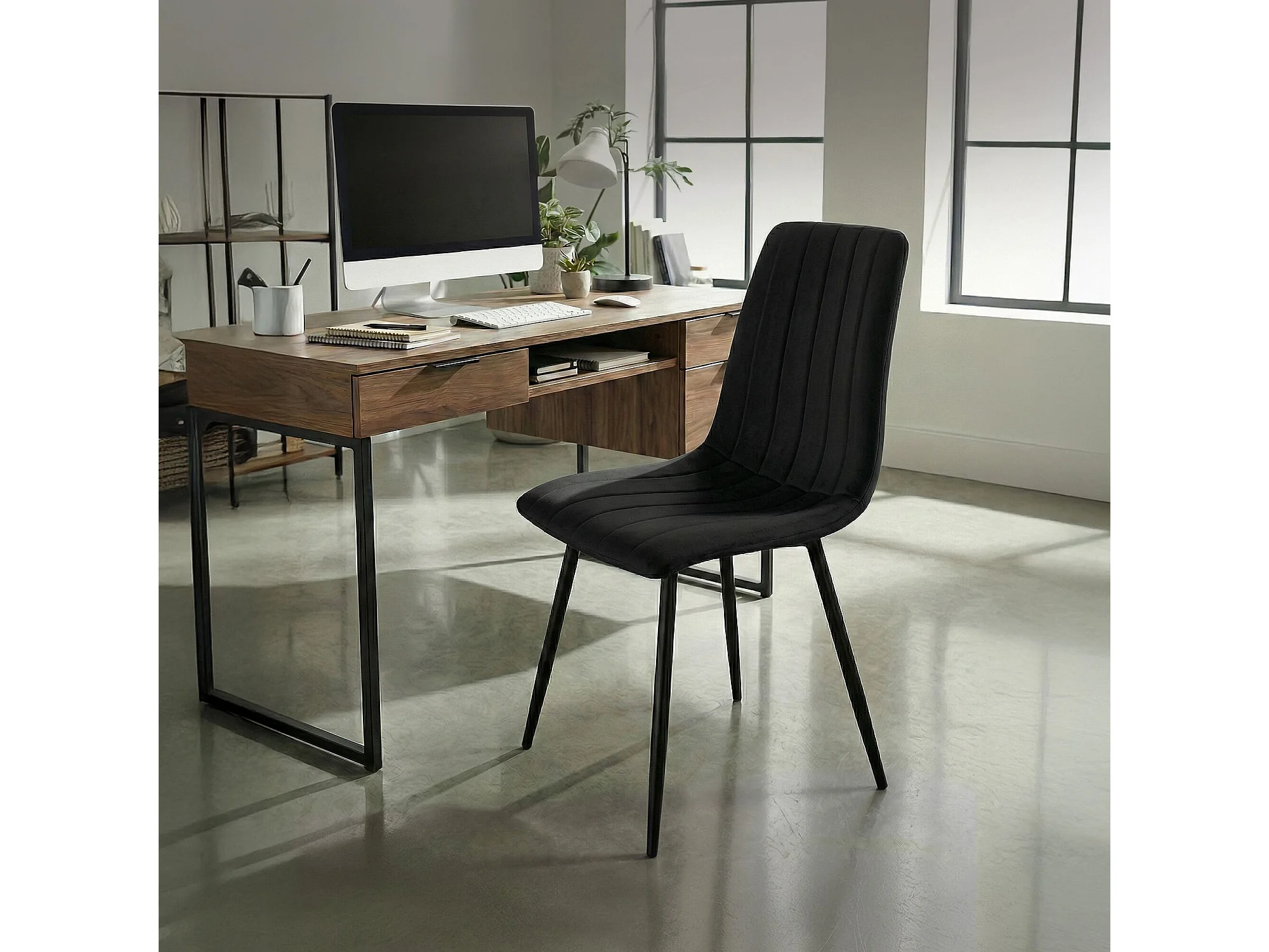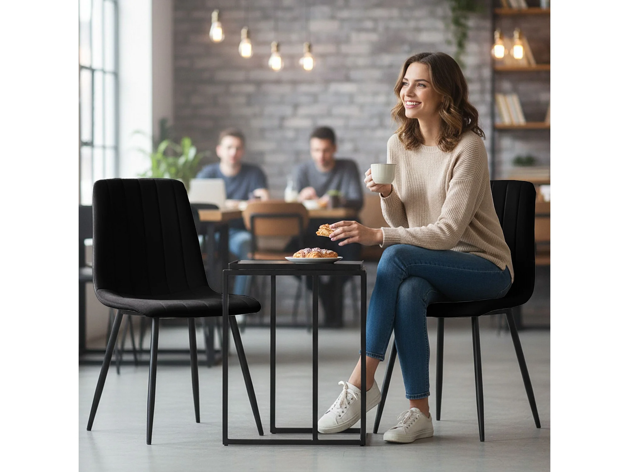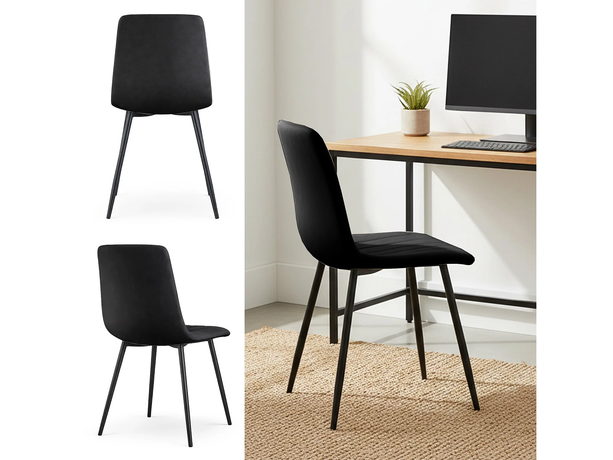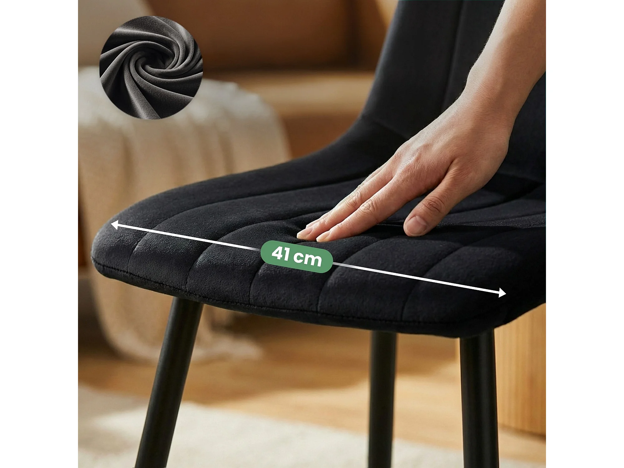 Cadeira de veludo acolchoada LIVO Preta pernas pretas