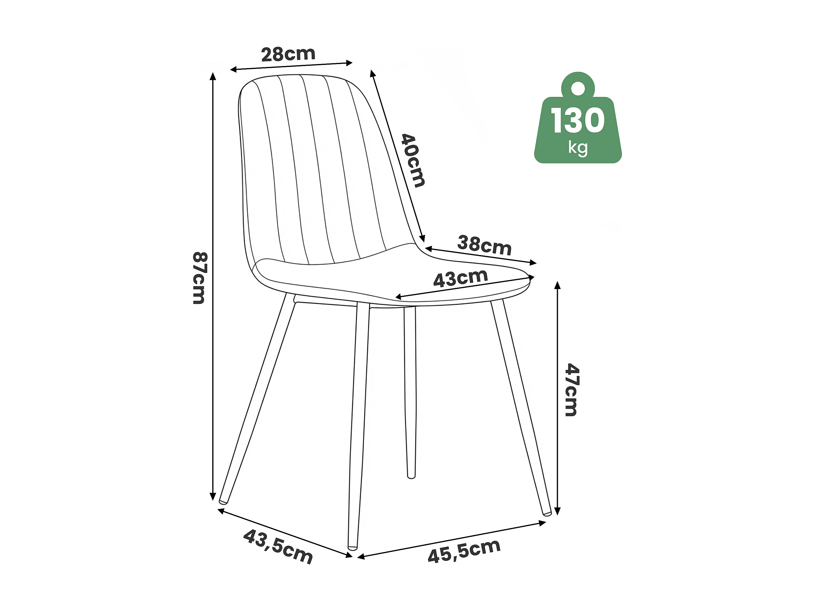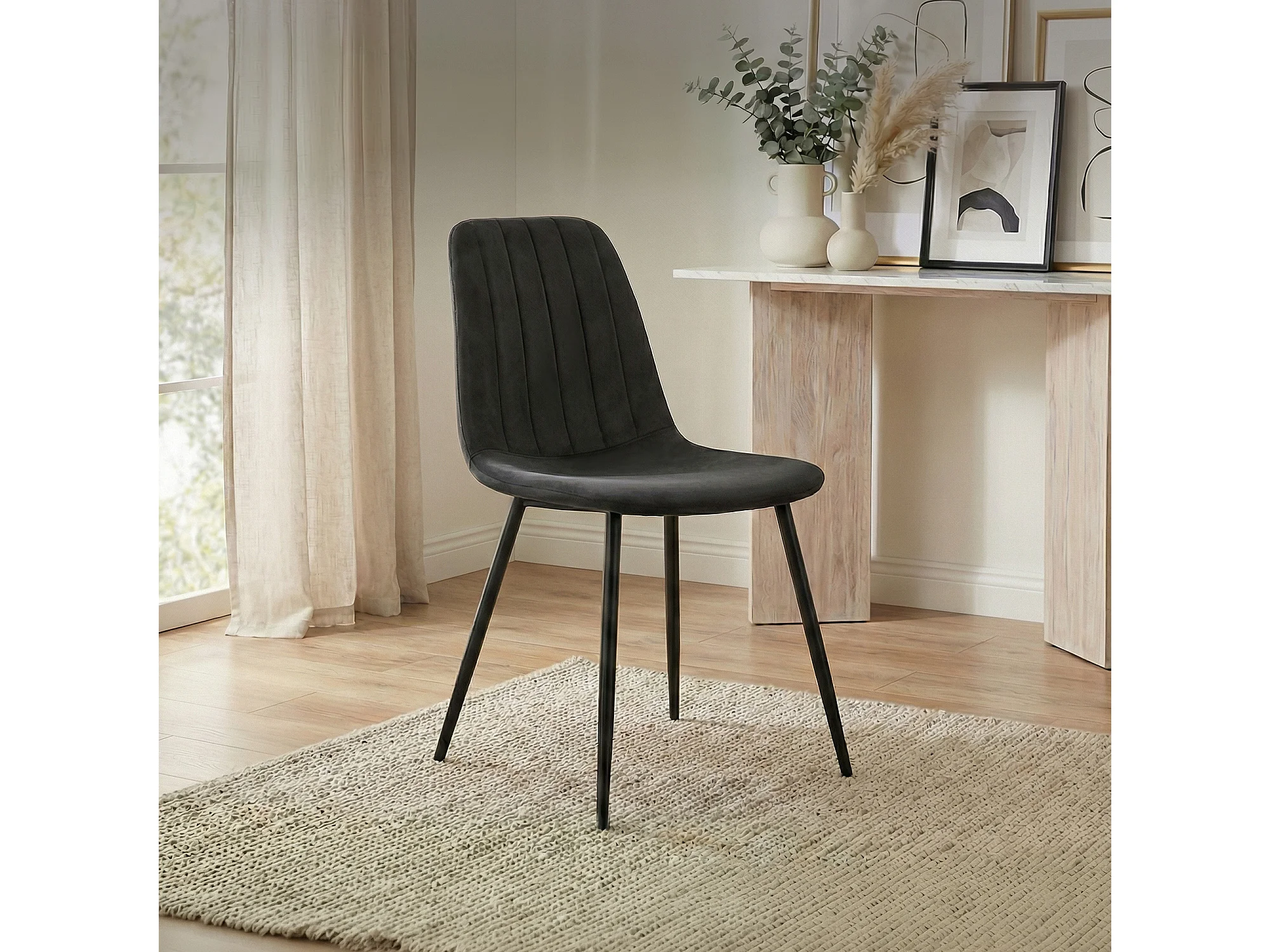 Cadeira de veludo acolchoada LUMO Preta pernas pretas