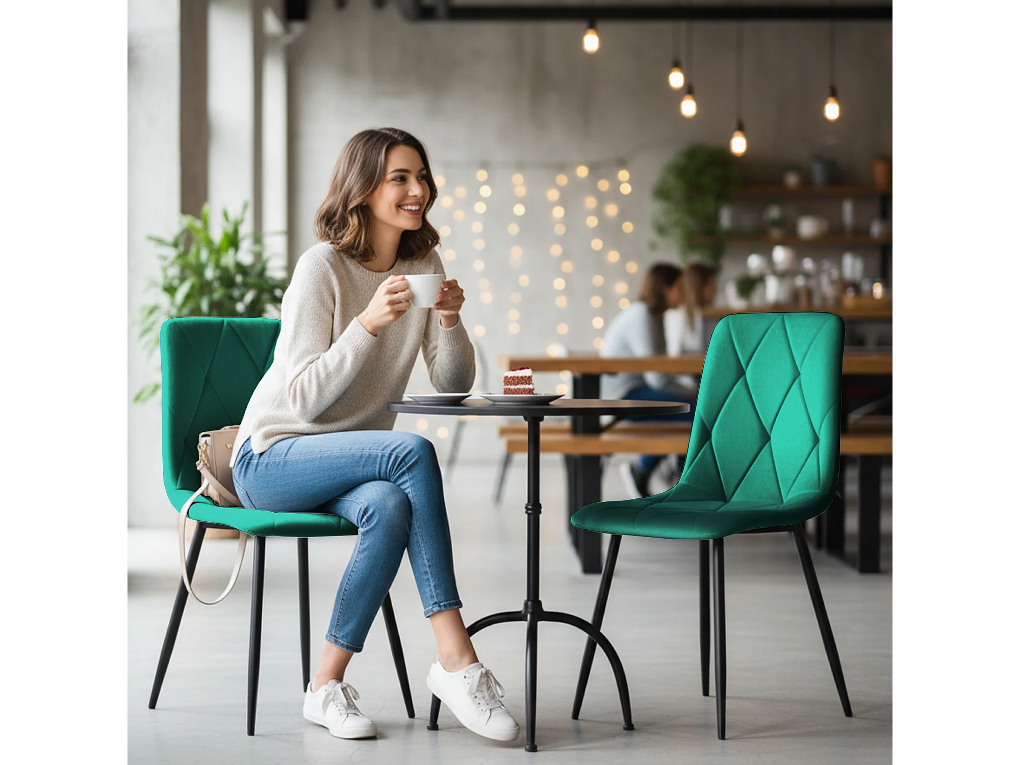 Cadeira de veludo acolchoada MILO Verde Garrafa pernas pretas
