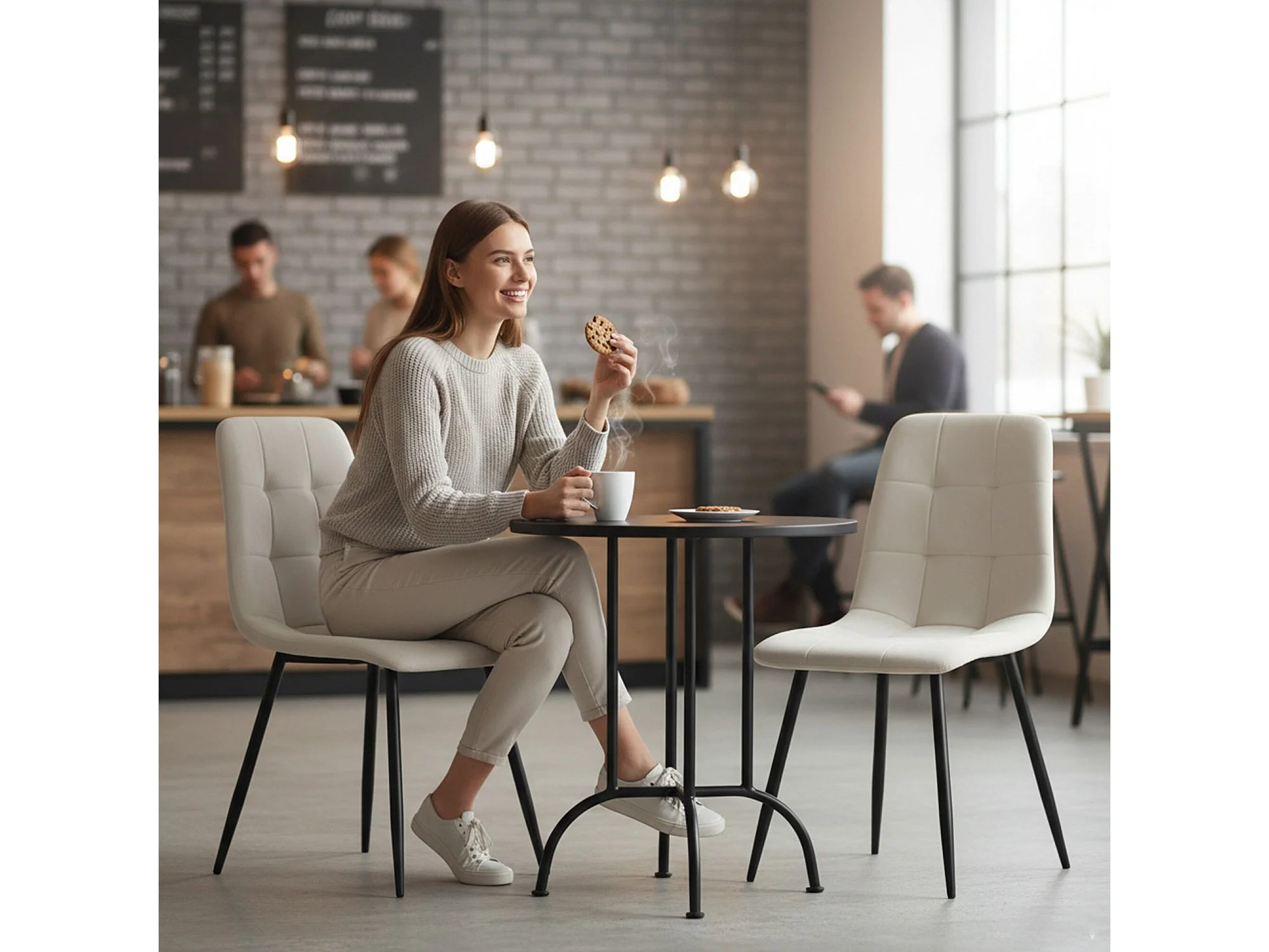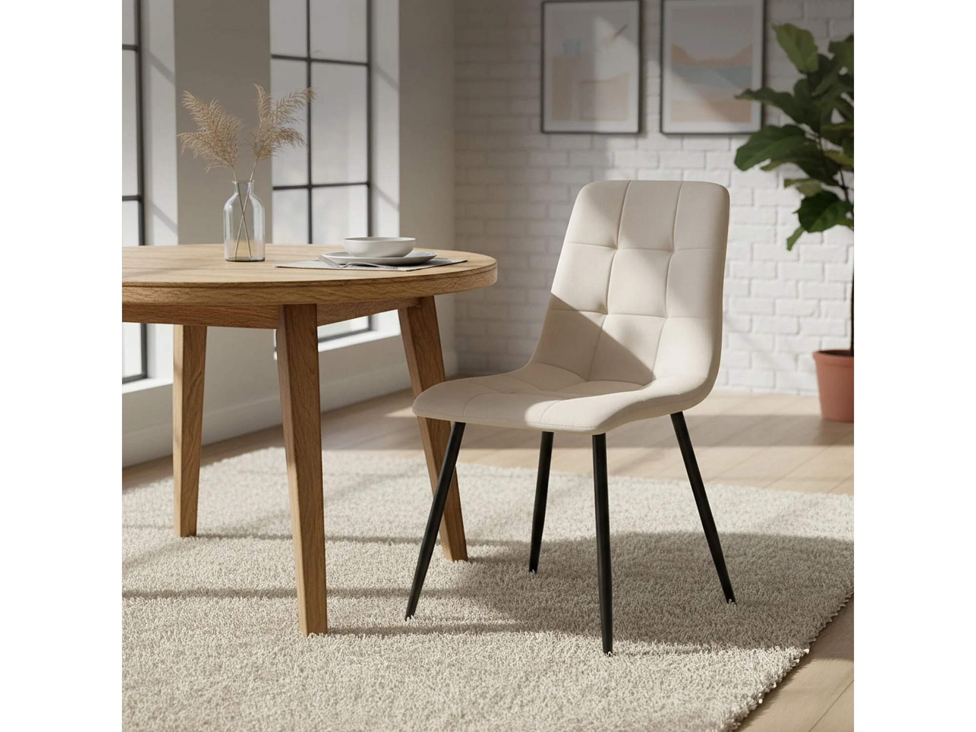 Cadeira de veludo acolchoada NERO Bege pernas pretas