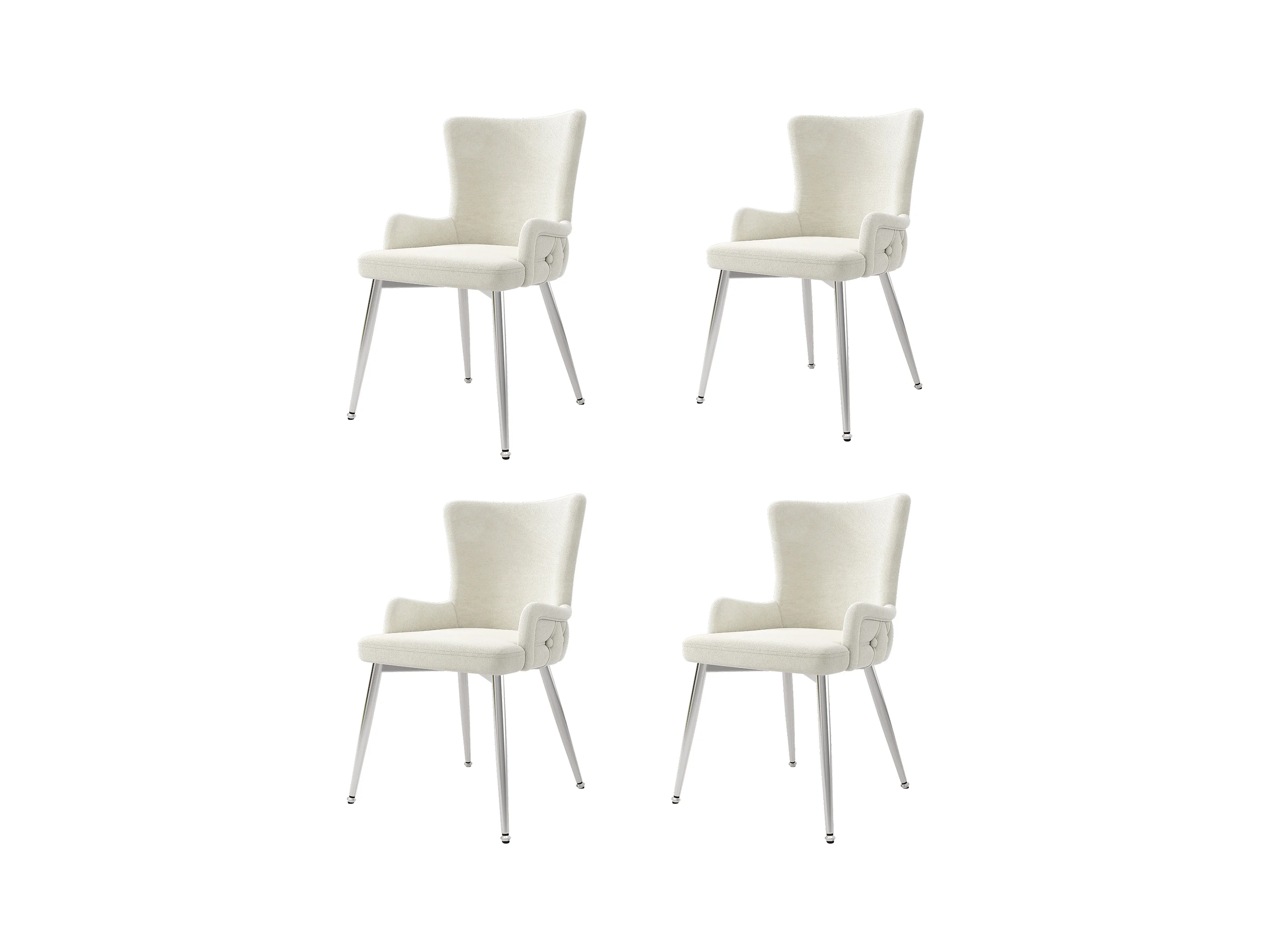 Cadeira de veludo bege de luxo com braços e pernas de metal prateado ajustáveis para sala de estar, quarto, sala de estar, conjunto de 4