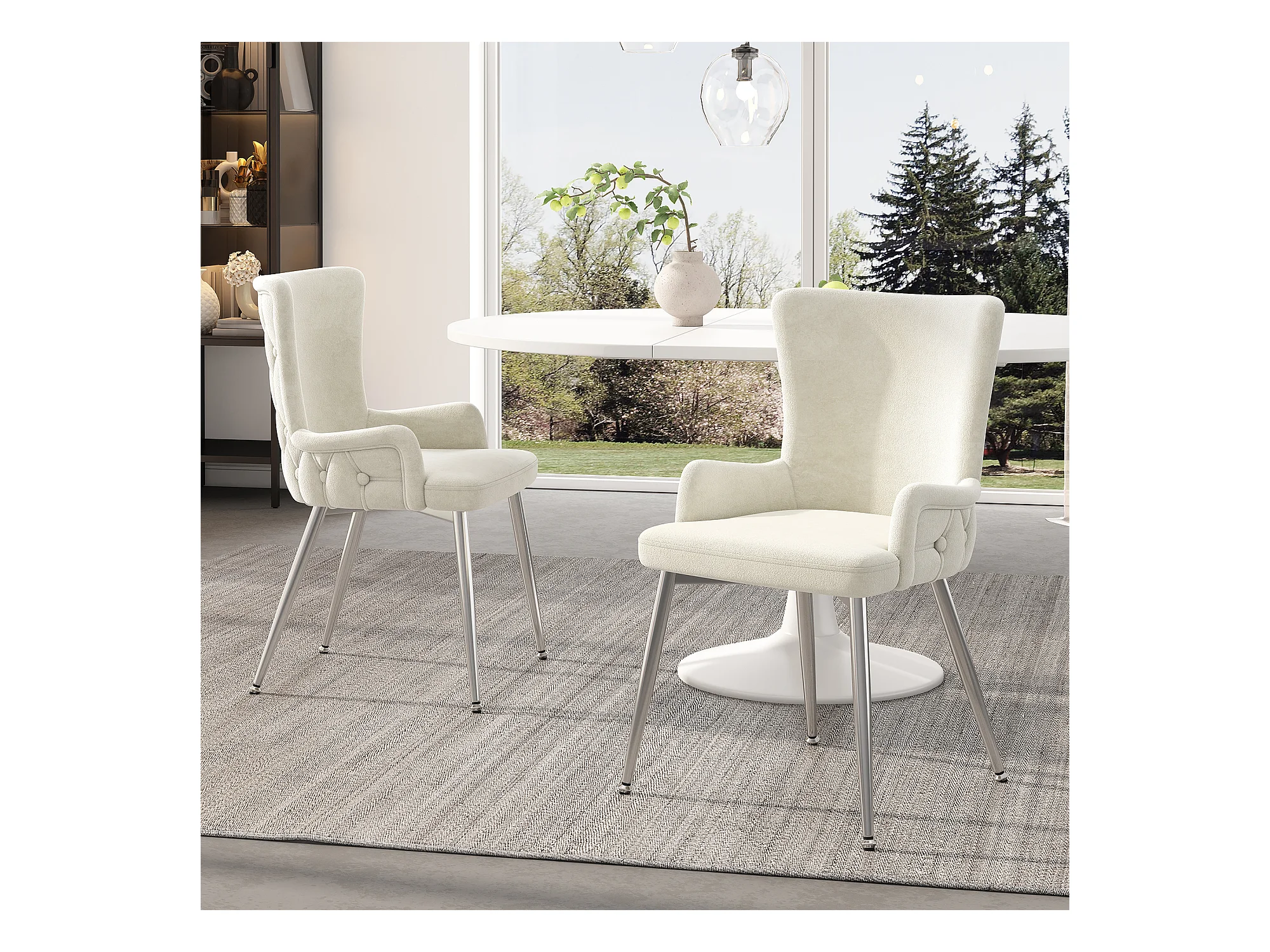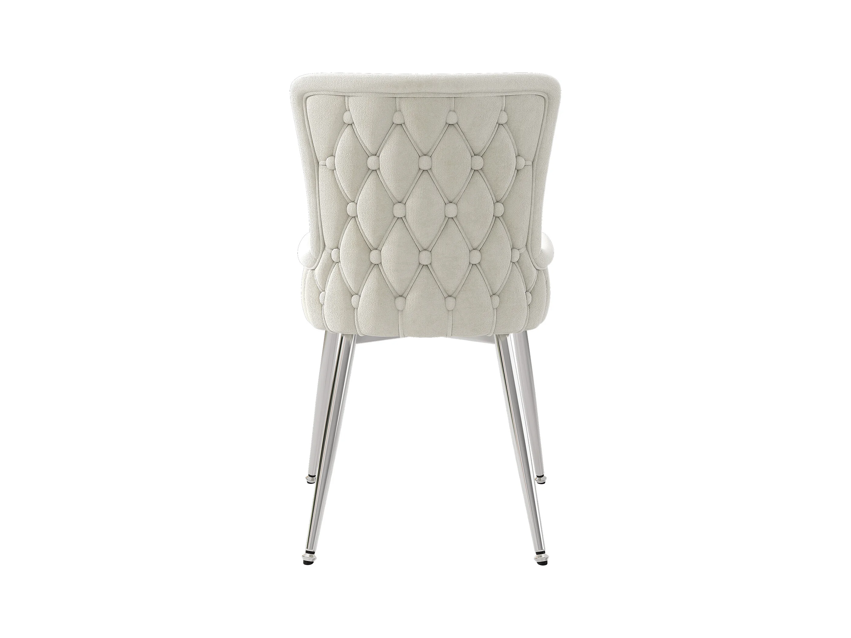 Cadeira de veludo bege com pernas de metal prateado, poltrona confortável, sala de estar moderna, conjunto de 4