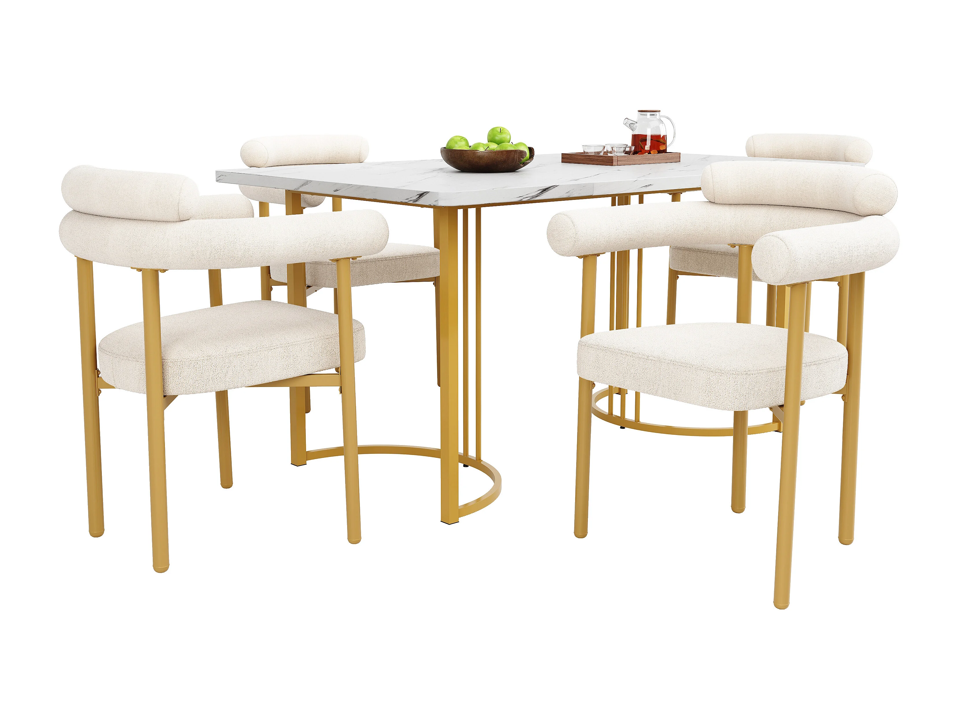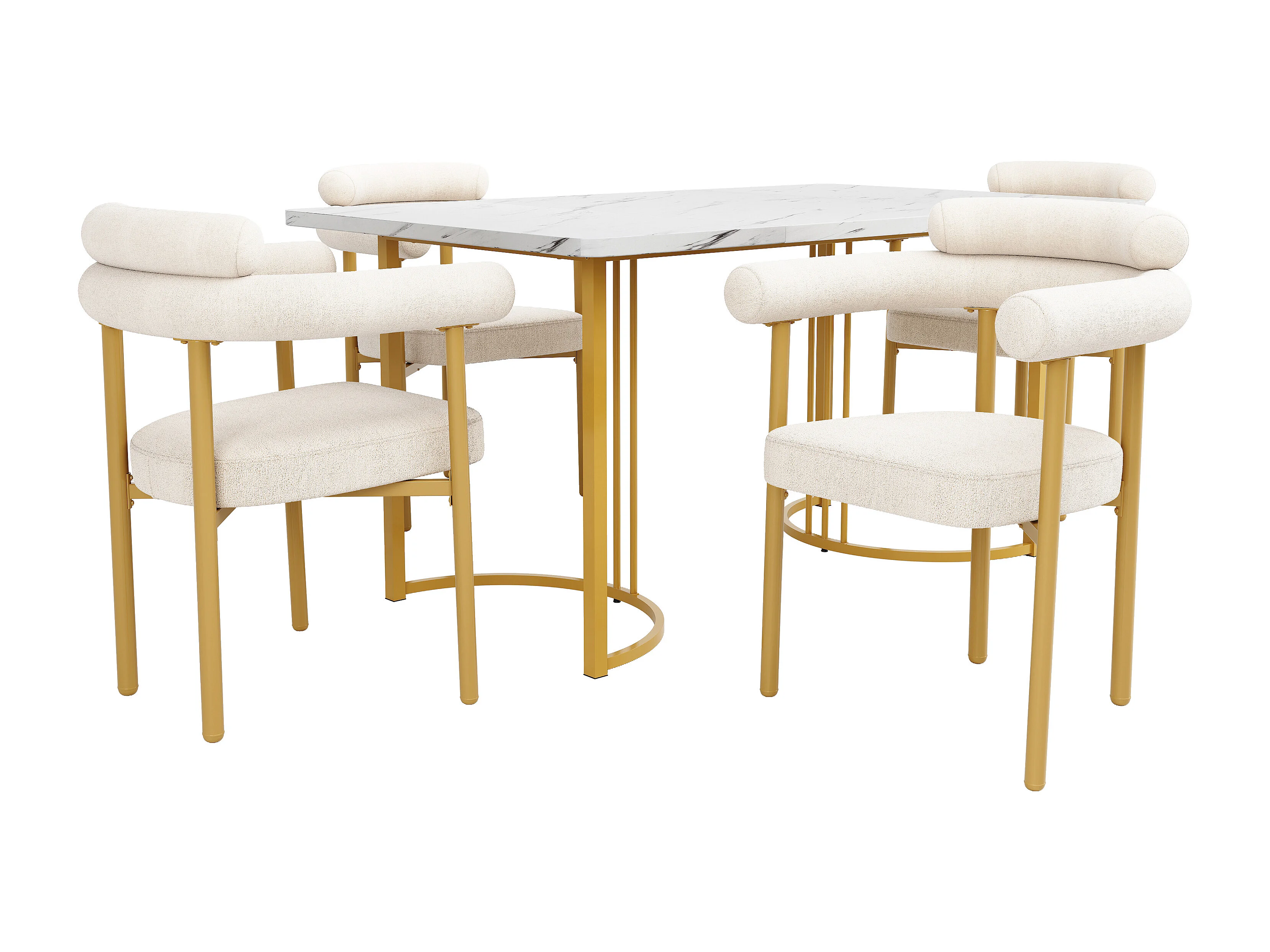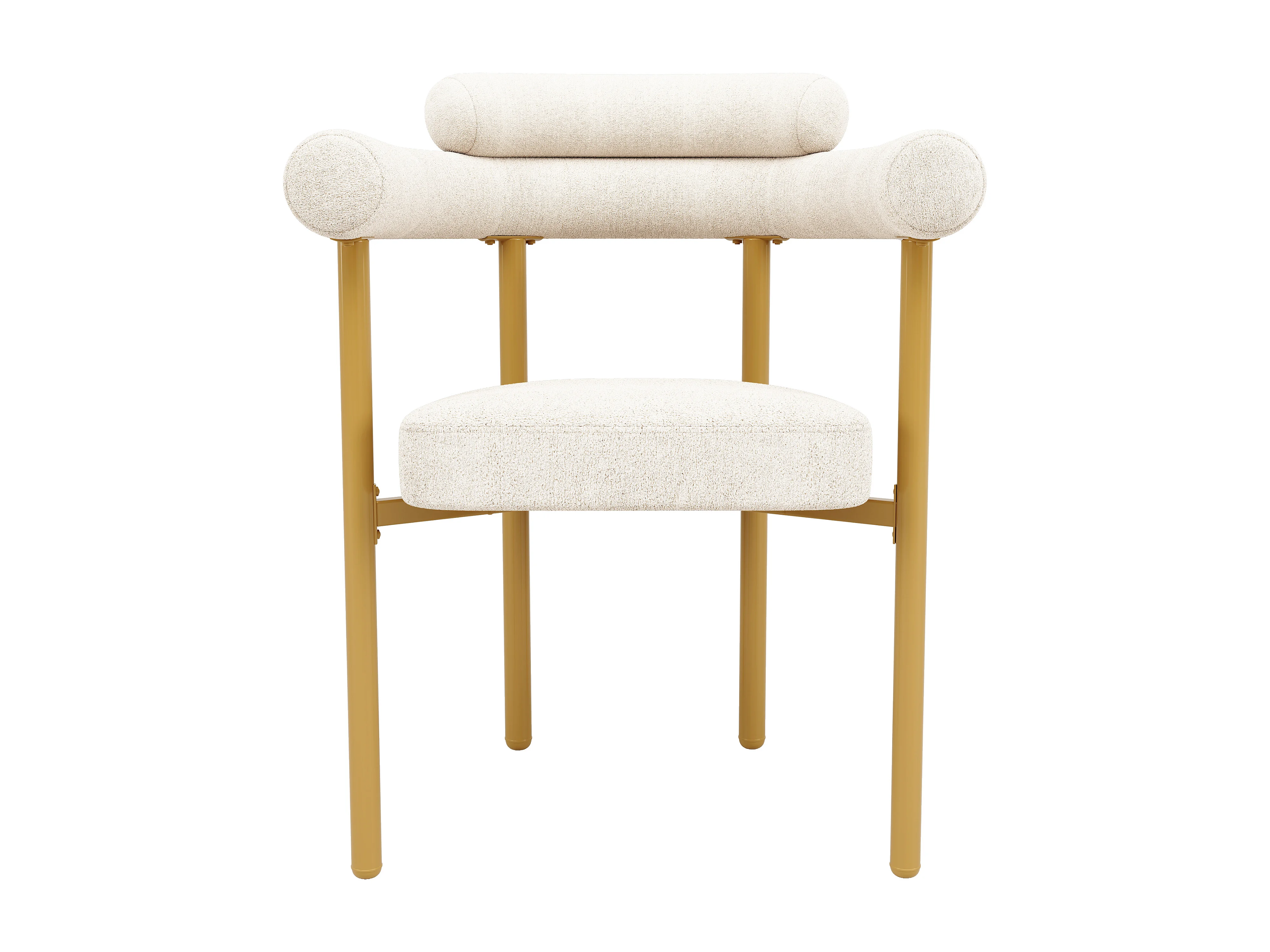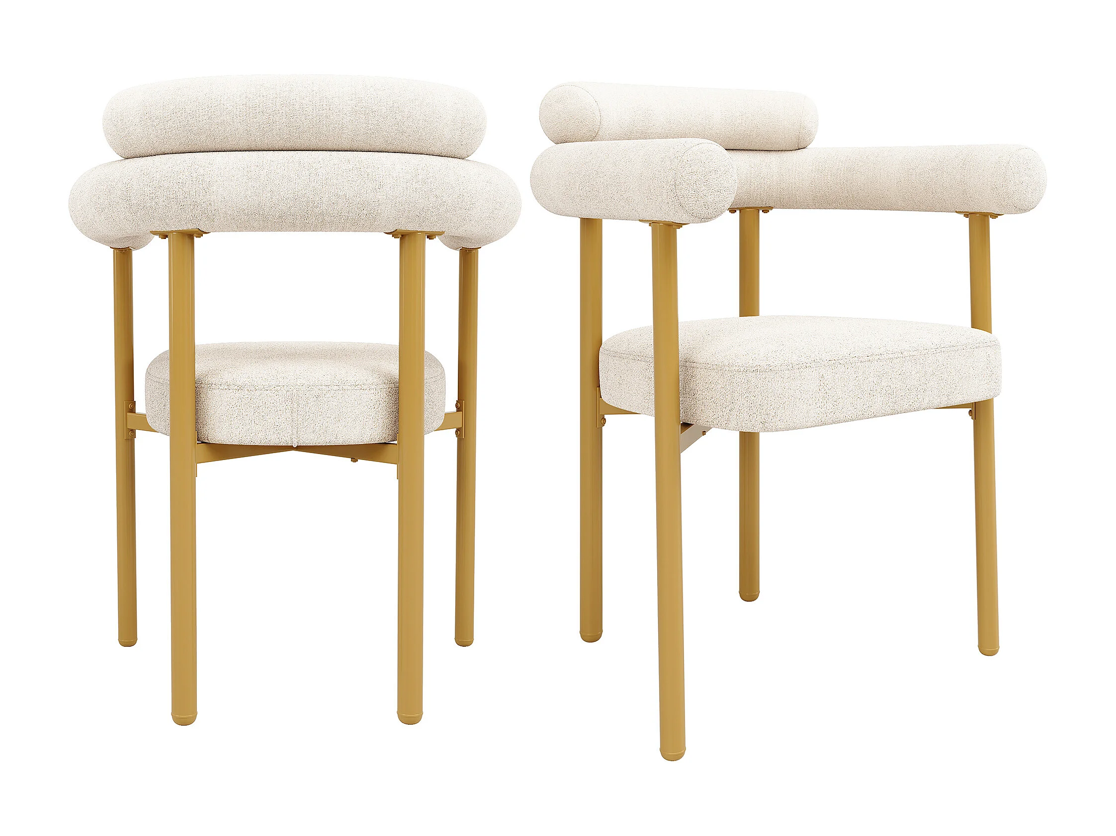 Cadeira de veludo creme com design moderno, assento confortável, pernas de metal, conjunto de 4