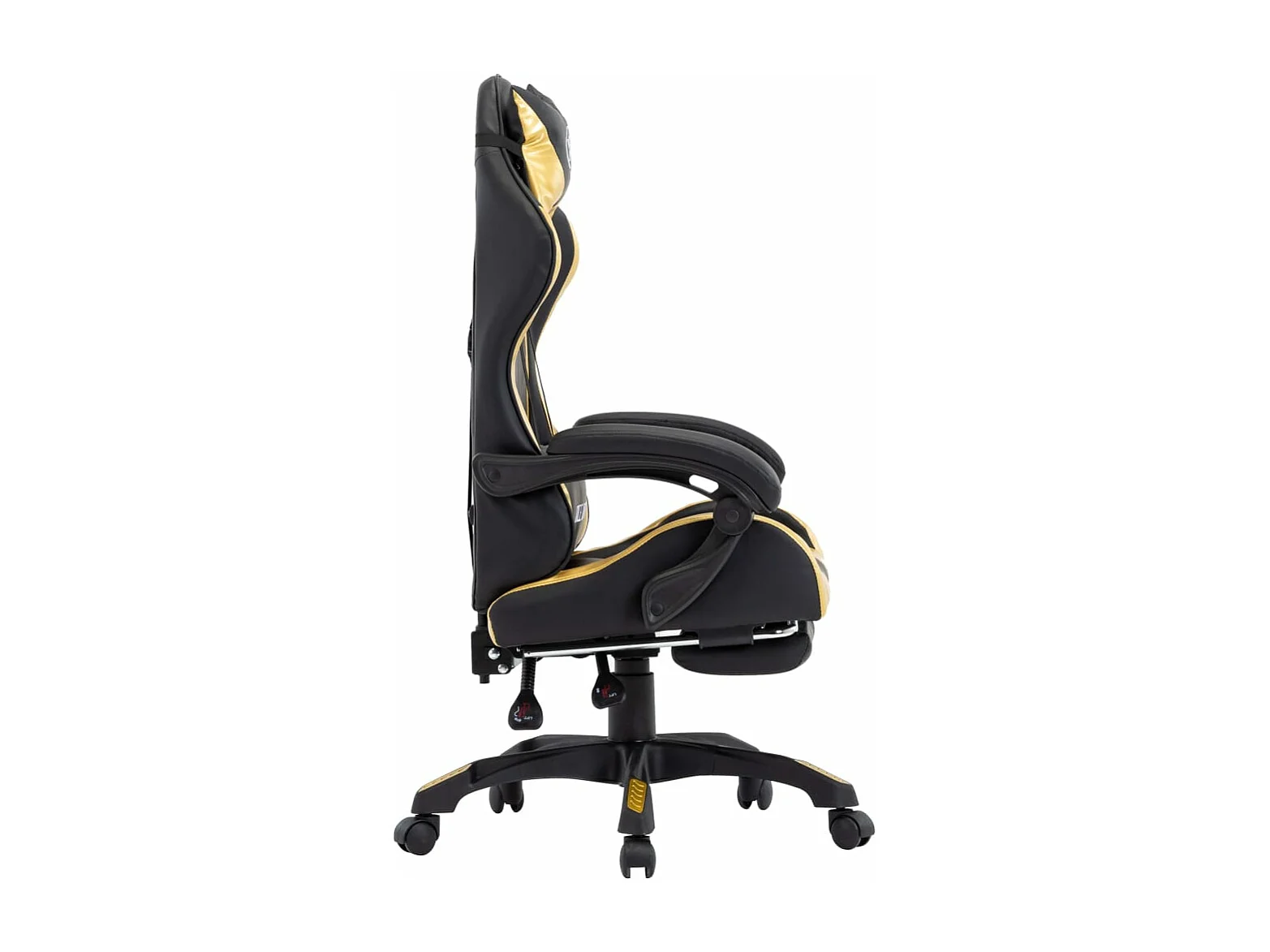 Cadeira de videogame com apoio para pés Couro sintético dourado e preto
