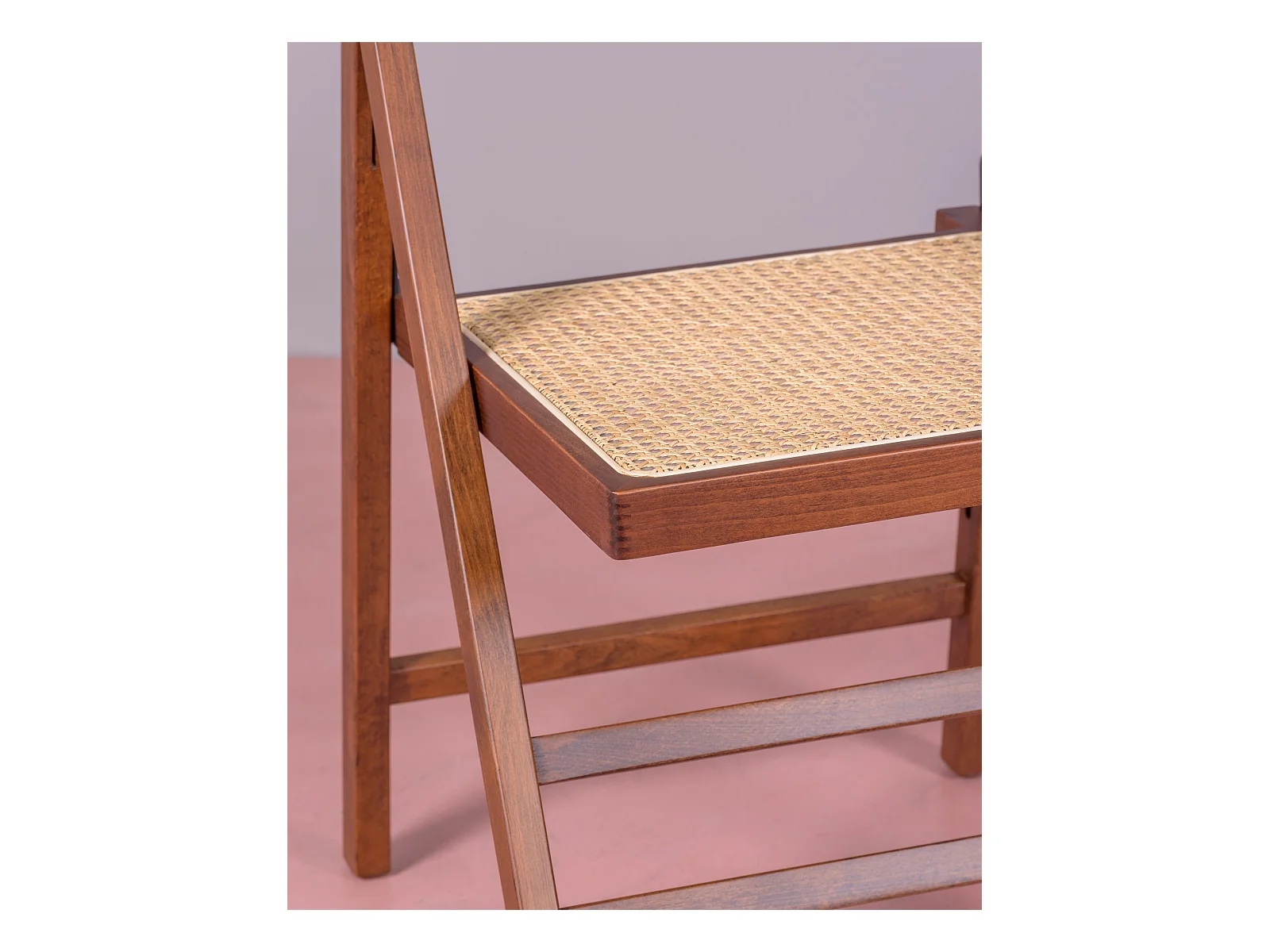 Cadeira dobrável estilo retro em rattan natural e madeira de nogueira - Compass - Noz