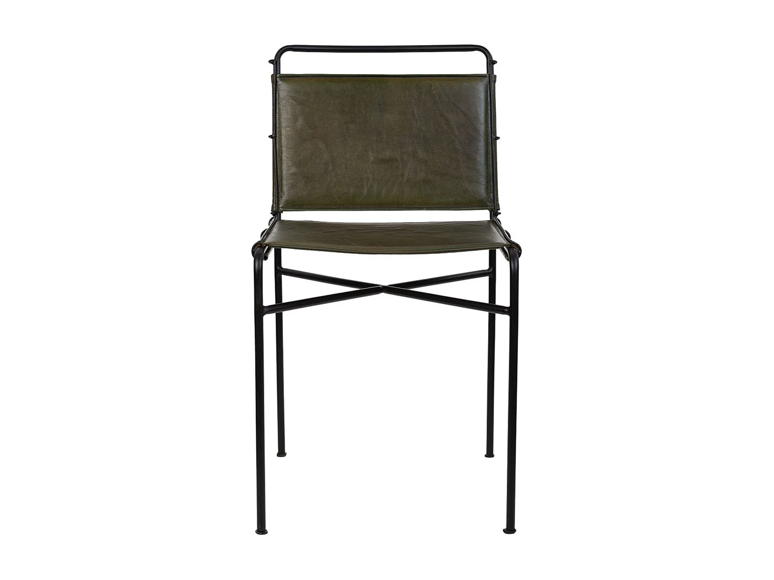 Cadeira em metal estofada em pele castanha, 48x46x89h cm