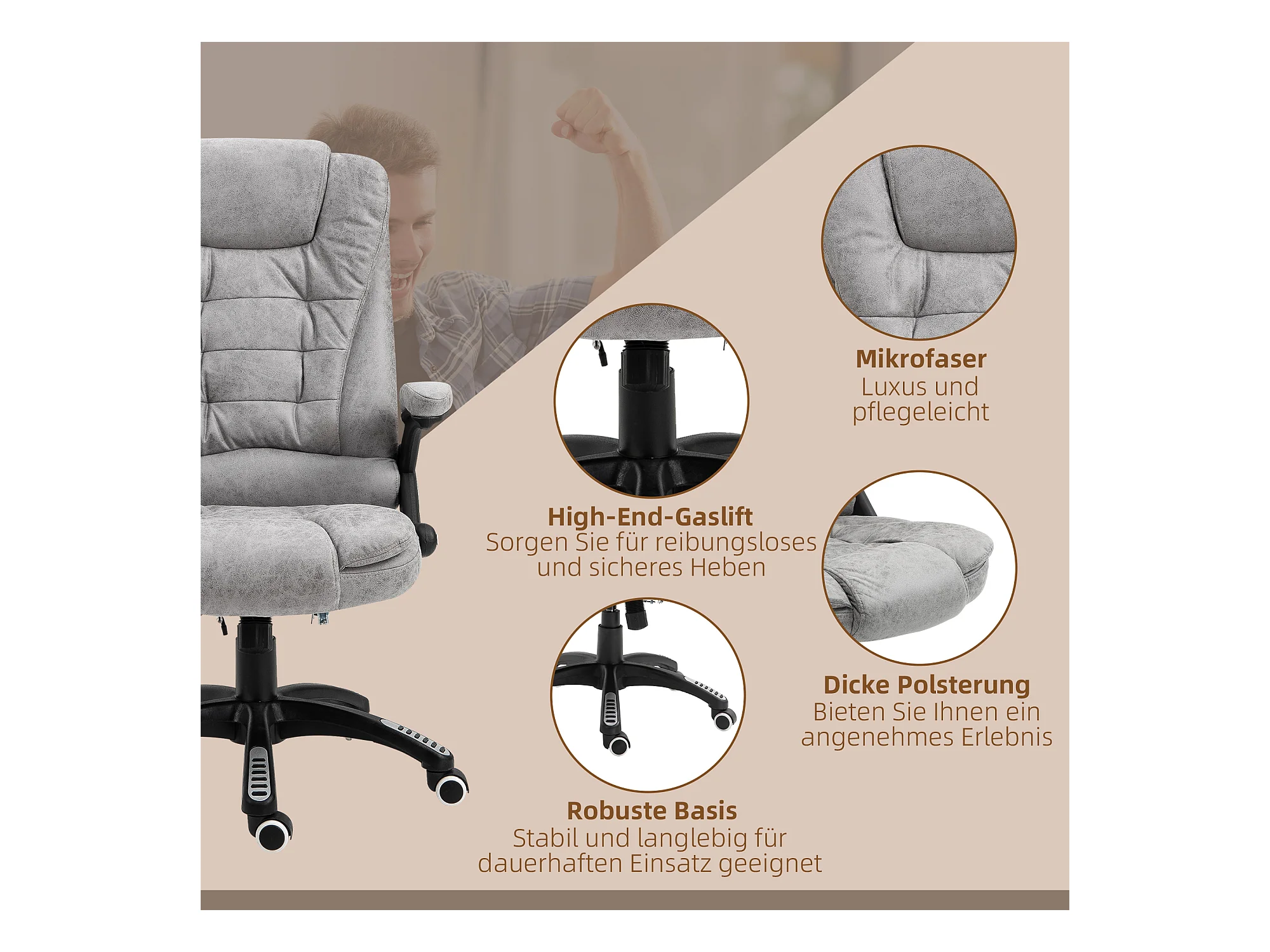 Cadeira de escritório ergonômica com massagem aquecida e giratória, tecido cinza, 67 x 74 x 116-126 cm