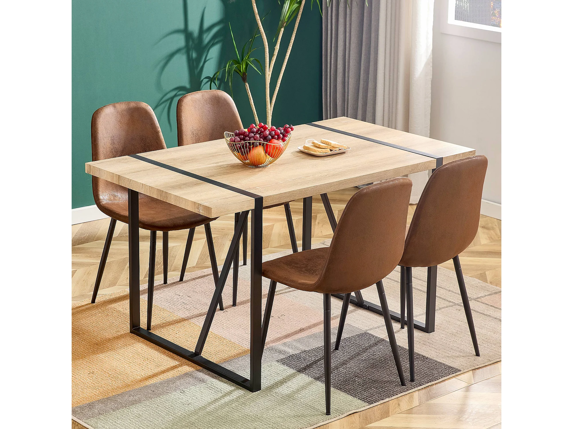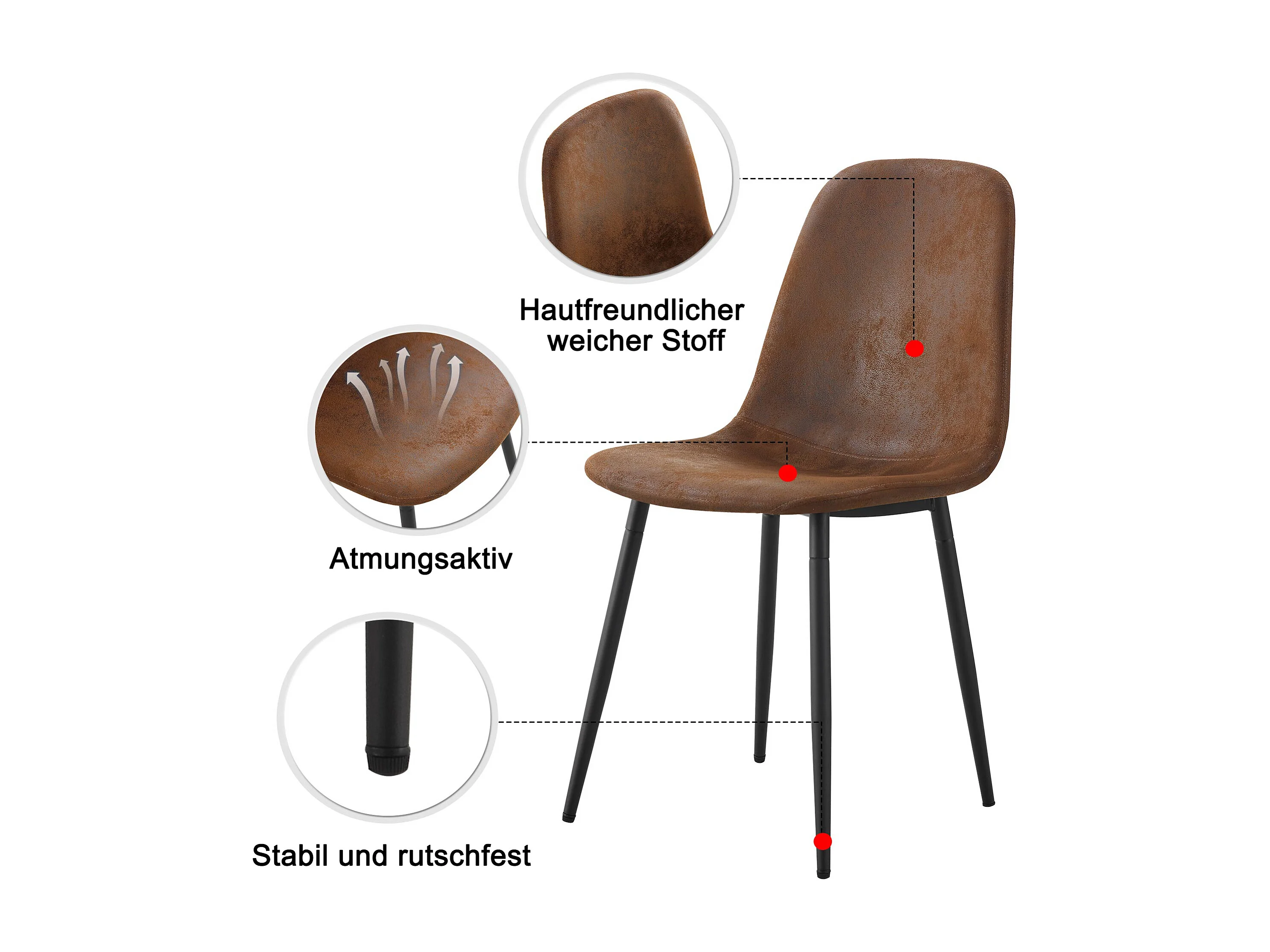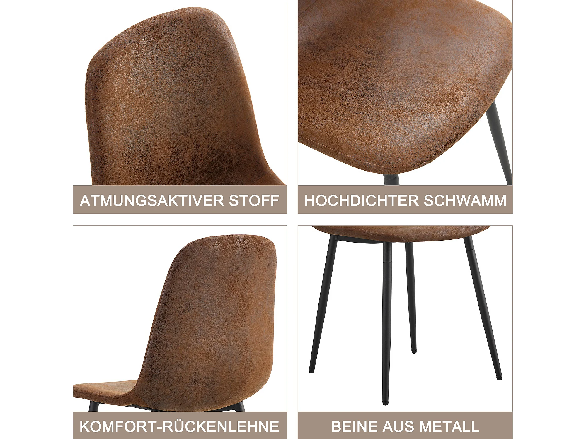 Cadeira escandinava vintage (4 peças), assento de couro sintético, pernas de aço, amarelo-marrom