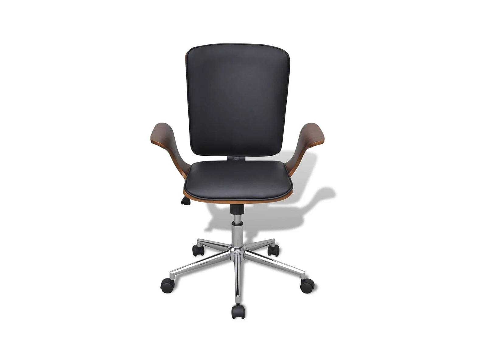 Cadeira escritório giratória madeira curvada e couro artificial