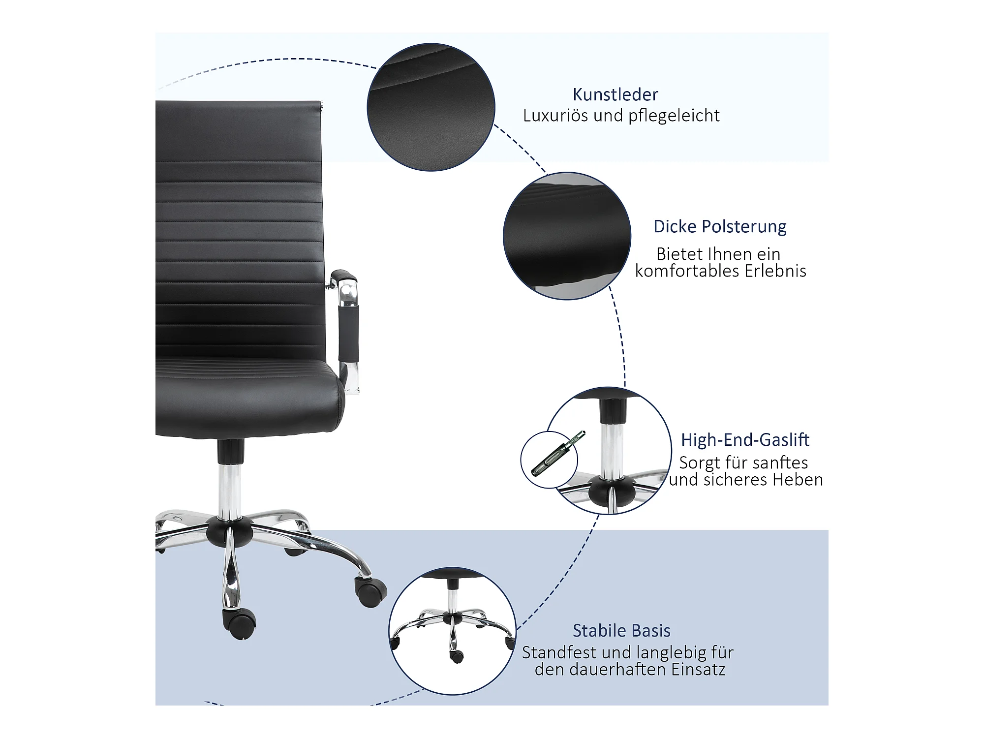 Cadeira executiva ergonômica, altura ajustável, assento acolchoado em couro sintético e espuma, preta, confortável para escritório